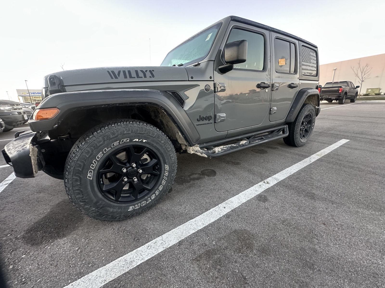 Certified Carfax No Accidents! Carfax One Owner! This 2023 Jeep Wrangler Willys is Sting-Gray Clearcoat with Black interior complete with these Key Features. Normal duty suspension, engine: 2.0L I4 DOHC DI Turbo w/ESS, transmission: 8-Speed Automatic (850RE), quick order package 22W Willys, 3.45 overall top gear ratio, wheels: 17" x 7.5" Moab Black aluminum, tires: LT255/75R17C, Sting-Gray Clearcoat, Black, cloth low-back bucket seats, GVWR: 5400 lbs, convenience group, technology group, trailer tow & aux switch group, cold weather group, Black 3-piece hard top, SiriusXM satellite radio. Call us today at 816-396-5394 or complete your finance application on our website at https://www.reedjeepram.com/finance/apply-for-financing/. We are your values driven, family-owned dealership in St. Joseph!