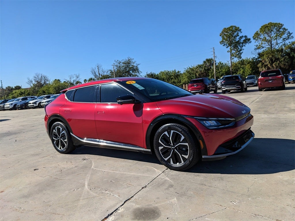 Certified. Recent Arrival! Kia Certified Pre-Owned Details: Vehicle History, Warranty Deductible: $50, Powertrain Limited Warranty: 120 Month/100,000 Mile (whichever comes first) from original in-service date, Includes Rental Car and Trip Interruption Reimbursement. 3 month Sirius trial subscription, Roadside Assistance, 165 Point Inspection, Limited Warranty: 12 Month/12,000 Mile (whichever comes first) Platinum Coverage from certified purchase date, Transferable Warranty. 2023 Runway Red Kia EV6 Wind This Kia EV6 has many features and is well equipped including, Kia Certified Pre-Owned Certified. Clean CARFAX. CARFAX One-Owner. Odometer is 6490 miles below market average! Thank you for taking the time to look at this terrific-looking 2023 Kia EV6. Please call us for more information or to set an appointment to see this vehicle.