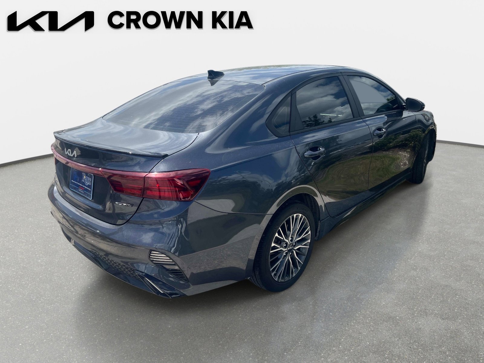 This 2023 Kia Forte GT-Line in Gravity Gray features Kia Certified Pre-Owned Certified, 17 x 7.0J Alloy Wheels, 4-Wheel Disc Brakes, 6 Speakers, ABS brakes, Air Conditioning, Alloy wheels, AM/FM radio: SiriusXM, Apple CarPlay & Android Auto, Auto High-beam Headlights, Automatic temperature control, Brake assist, Bumpers: body-color, Carpet Floor Mats, Cloth & SynTex Seat Trim, Delay-off headlights, Driver door bin, Driver vanity mirror, Dual front impact airbags, Dual front side impact airbags, Electronic Parking Brake (EPB), Electronic Stability Control, Emergency communication system, Exterior Parking Camera Rear, Forward Collision Avoidance-Assist - Cyclist, Front anti-roll bar, Front Bucket Seats, Front Center Armrest, Front dual zone A/C, Front fog lights, Front reading lights, Front wheel independent suspension, Fully automatic headlights, GT-Line Technology Package, Heated door mirrors, Illuminated entry, Leather Shift Knob, Leather steering wheel, Low tire pressure warning, Navigation System, Navigation-Based Smart Cruise Control (NSCC), Occupant sensing airbag, Outside temperature display, Overhead airbag, Overhead console, Panic alarm, Passenger door bin, Passenger vanity mirror, Power door mirrors, Power steering, Power windows, Radio data system, Rear window defroster and other.