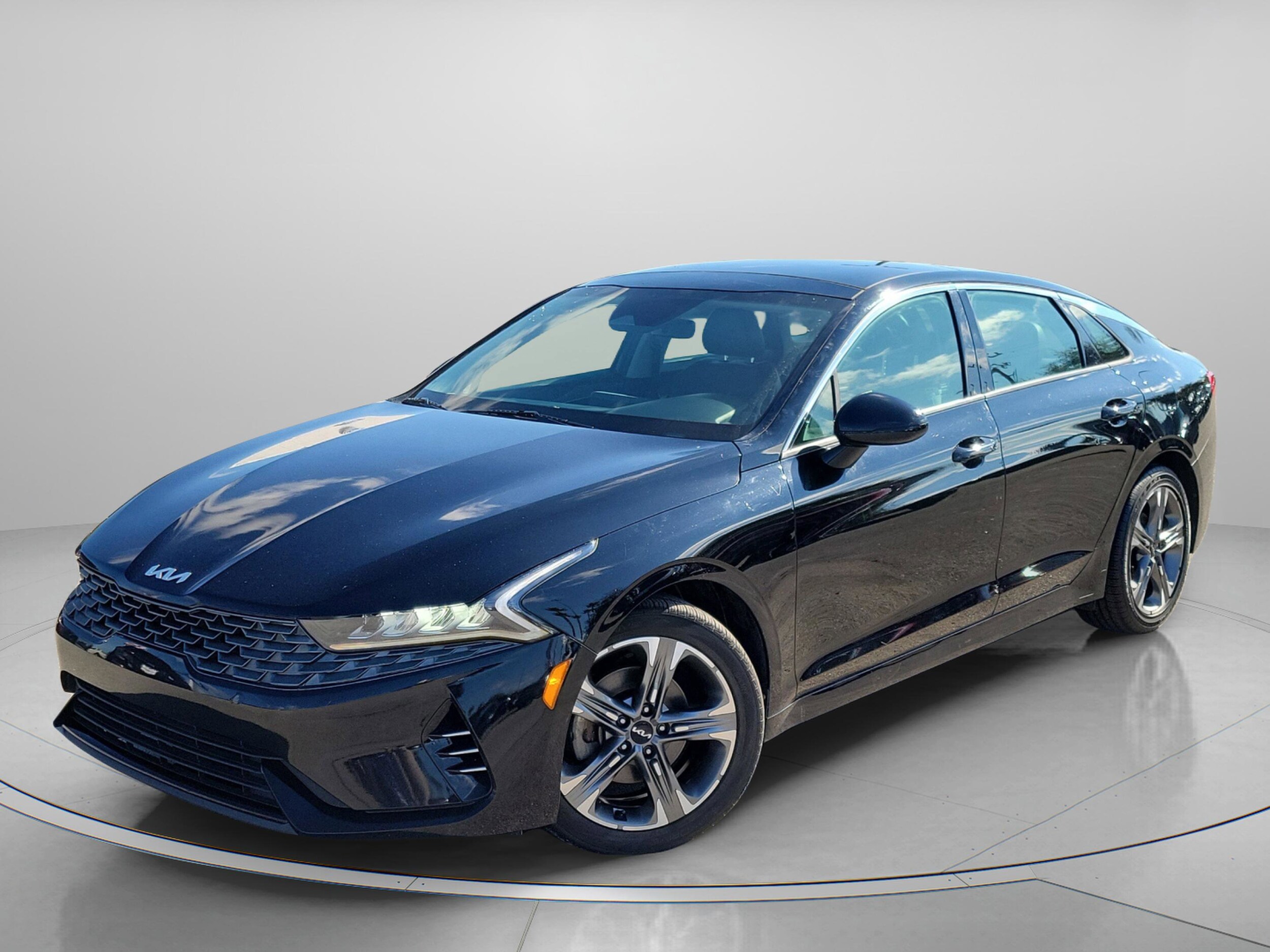 Certified. 2023 Kia K5 EX. Designed to turn everyday drives into something a little more enjoyable, this 2023 Kia K5 EX FWD blends sleek midsize sedan styling with the kind of comfort and tech that fits right in whether you're cruising through Jacksonville, heading down I-95 toward Daytona Beach, or making the daily commute from Starke or Kingsland. Finished in Ebony Black with a refined Black interior, the K5 EX delivers a confident, modern feel with its turbocharged 1.6L engine and smooth 8-speed automatic transmission, giving you responsive power while still returning impressive fuel efficiency for longer drives across North Florida and South Georgia. Inside, you'll appreciate the upscale touches like SynTex seating, a power driver's seat with lumbar support, heated and ventilated front seats, dual-zone automatic climate control, and a panoramic sunroof that opens the cabin up to Florida sunshine. The large touchscreen with navigation, Apple CarPlay, Android Auto, wireless phone charging, and premium connectivity keeps you seamlessly connected whether you're navigating city streets or planning a weekend escape to Tampa or Orlando. Kia Drive Wise driver-assist technologies such as blind-spot monitoring, lane keeping assist, forward collision avoidance, and rear cross-traffic alert add peace of mind in busy traffic and crowded parking lots. Stylish 18-inch alloy wheels, LED lighting, smart key with push-button start, remote start, and a smart trunk round out a package that feels equally suited for workdays and weekend getaways. If you're searching for a well-equipped used midsize sedan near Jacksonville, Tallahassee, Starke, Kingsland, or anywhere across Southern Georgia and Florida, this 2023 Kia K5 EX FWD offers standout design, advanced safety, modern technology, and everyday comfort in one sleek, fuel-efficient package.