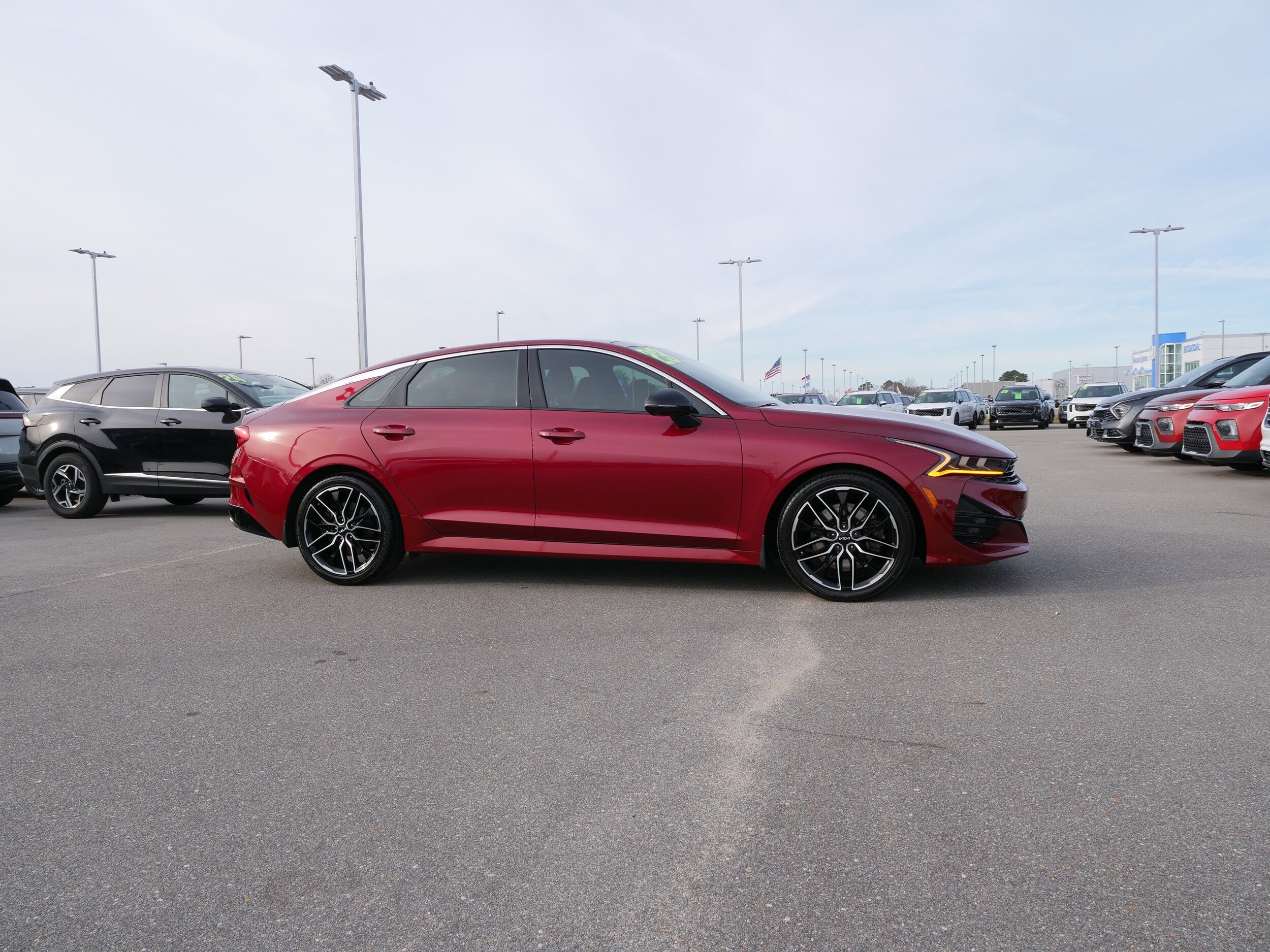 Certified. Passion Red 2023 Kia K5 GT FWD 8 Speed Dual Clutch 2.5L I4 DGI Turbocharged DOHC 16V LEV3-ULEV70 290hp GT1 Package (Active Sound Design, Auto Up/Down Rear Windows, Bose Premium Audio, Forward Collision Avoidance-Assist, Heated Steering Wheel, Highway Driving Assist, Leather-Wrapped Shift Knob, LED Projection Headlamps, Memory Driver's Seat & Outside Mirrors, Navigation-Based Smart Cruise Control - Curve, Parking Collision Avoidance-Assist - Reverse, Parking Distance Warning - Forward & Reverse, Power Child Lock, Power Folding Outside Mirrors w/LED Turn Signals, Power Front Passenger Seat, Safe Exit Assist w/Lock, Smart Cruise Control w/Stop & Go, Surround View Monitor, and Ventilated Front Seats), Kia Certified Pre-Owned Certified. Odometer is 18742 miles below market average! 24/32 City/Highway MPG.
