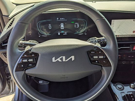 Certified. 2023 Steel Gray Kia Niro EX This Kia Niro has many features and is well equipped including, 4-Wheel Disc Brakes, 4.438 Axle Ratio, 6 Speakers, ABS brakes, Air Conditioning, Alloy wheels, AM/FM radio: SiriusXM, Apple CarPlay & Android Auto, Auto High-beam Headlights, Automatic temperature control, Brake assist, Bumpers: body-color, Cargo Net, Carpet Floor Mats, Cloth & Vegan Leather-Trimmed Seats, Delay-off headlights, Driver door bin, Driver vanity mirror, Dual front impact airbags, Dual front side impact airbags, Electronic Stability Control, Emergency communication system: Kia Connect (includes 1 year free trial), Exterior Parking Camera Rear, Four wheel independent suspension, Front anti-roll bar, Front Bucket Seats, Front Center Armrest, Front dual zone A/C, Front reading lights, Fully automatic headlights, Heated door mirrors, Heated Front Bucket Seats, Heated front seats, Illuminated entry, Knee airbag, Leather Shift Knob, Low tire pressure warning, Navigation System, Occupant sensing airbag, Outside temperature display, Overhead airbag, Overhead console, Panic alarm, Passenger door bin, Passenger vanity mirror, Power door mirrors, Power driver seat, Power steering, Power windows, Radio: AM/FM/HD/SiriusXM, Rain sensing wipers, Rear anti-roll bar, Rear seat center armrest, Rear window defroster, Rear window wiper, Remote keyless entry, Security system, Smart Key w/ Push Button and Remote Start, Speed control, Speed-sensing steering, Split folding rear seat, Spoiler, Steering wheel mounted audio controls, Telescoping steering wheel, Tilt steering wheel, Traction control, Trip computer, Turn signal indicator mirrors, Two-Level Luggage Board, Variably intermittent wipers, Wheels: 16 Alloy Aero. Priced below KBB Fair Purchase Price! Clean CARFAX. CARFAX One-Owner. Odometer is 6919 miles below market average! Thank you for taking the time to look at this beautiful-looking 2023 Kia Niro. Please call us for more information or to set an appointment to see this vehicle.