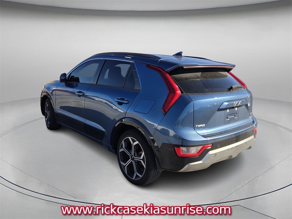 Recent Arrival! Carfax One-Owner. Clean Carfax. 10 year or 100,000 mile Powertrain Warranty, 150 Point Inspection, Kia Certified, Unlimited Car Wash, Rick Case Rewards. Certified. Mineral Blue 2023 Kia Niro EX Touring FWD 6-Speed Automatic 1.6L I4 DGI Hybrid DOHC 16V LEV3-SULEV30 Kia Certified Pre-Owned Details: Limited Warranty: 12 Month/12,000 Mile (whichever comes first) "Platinum Coverage" from certified purchase date. 165 Point Inspection. Transferable Warranty. Warranty Deductible: $50. Includes Rental Car and Trip Interruption Reimbursement. 3 month Sirius trial subscription. Roadside Assistance. Powertrain Limited Warranty: 120 Month/100,000 Mile (whichever comes first) from original in-service date. Vehicle History. Odometer is 8977 miles below market average! 53/45 City/Highway MPG. Thank you for shopping at Rick Case Kia. We want to help you become a member of the Rick Case Kia Family. As a Rick Case Kia Family member, you receive a free Rick Case Rewards Card that gets you discounted gas. You will also receive discounted service and free car washes.