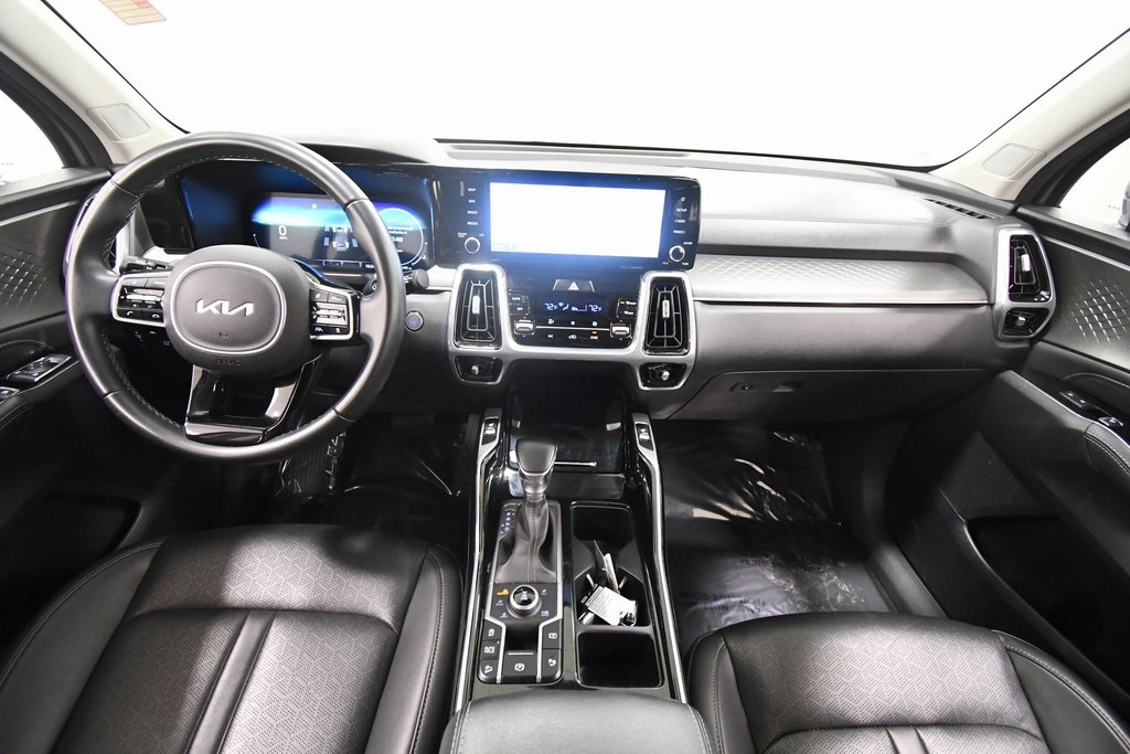 Certified. 2023 Kia Sorento SX AWD. Certified, clean vehicle history report, one owner, local trade in, AWD, 3rd row seats: split-bench, 6 speakers, Apple CarPlay & Android Auto, emergency communication system, exterior parking camera rear, front dual zone A/C, heated front bucket seats, navigation system, power driver seat, power moonroof, power passenger seat, radio: AM/FM audio system, smart key with push button and remote start, split folding rear seat, steering wheel mounted audio controls, SynTex artificial leather seat trim, telescoping steering wheel, tilt steering wheel, turn signal indicator mirrors, wheels: 8.5J x 20" gloss black alloy. 22/27 City/Highway MPG. To keep you safe, we deliver! Buy online-text-email-chat-phone and we will deliver your next vehicle to your door! It’s that easy. Local delivery. See dealer for details. All trade-ins welcome. We'll buy your car even if you don't buy ours! Tom Kadlec Kia. We've got you covered!