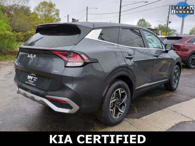 Recent Arrival! Carfax One-Owner. Certified. Gravity Gray 2023 Kia Sportage LX I4 8-Speed Automatic AWD. Priced below KBB Fair Purchase Price! Odometer is 13788 miles below market average! 23/28 City/Highway MPG. Kia Certified Pre-Owned Details: Vehicle History, Roadside Assistance, Warranty Deductible: $50, 165 Point Inspection, Limited Warranty: 12 Month/12,000 Mile (whichever comes first) "Platinum Coverage" from certified purchase date, Includes Rental Car and Trip Interruption Reimbursement. 3 month Sirius trial subscription, Transferable Warranty, Powertrain Limited Warranty: 120 Month/100,000 Mile (whichever comes first) from original in-service date.