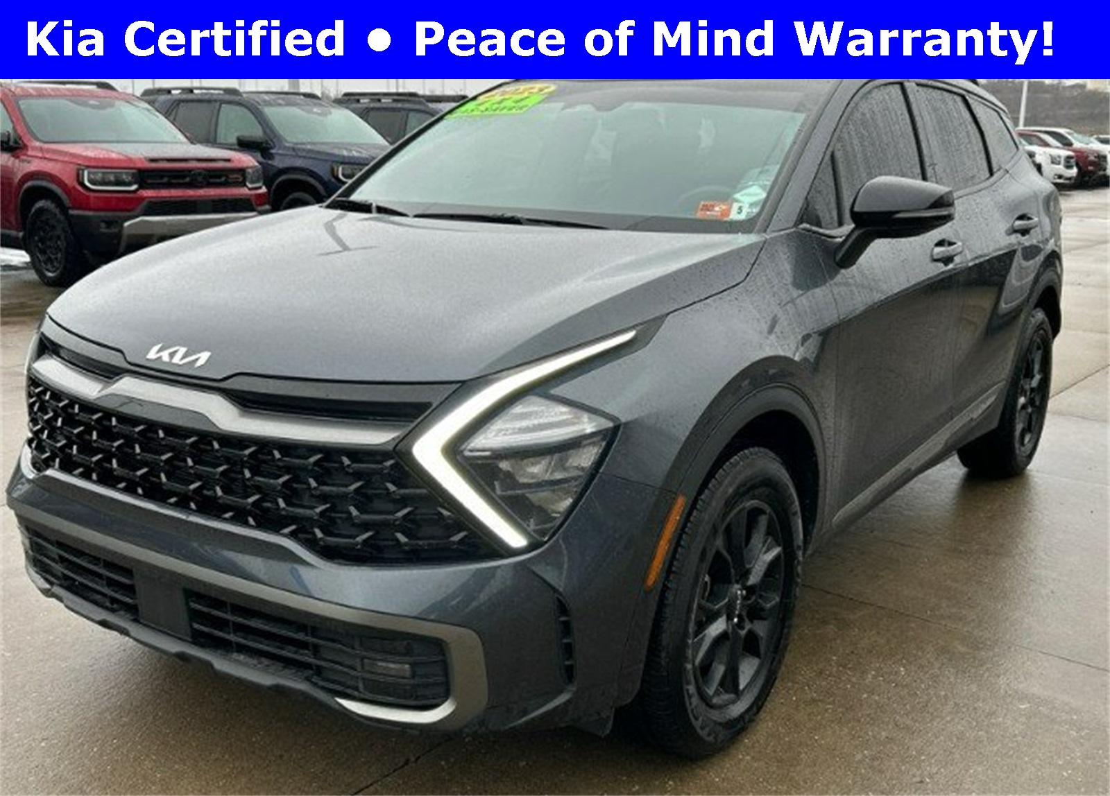 AWD. 2023 Kia Sportage X-Pro Gravity Gray AWD 23/28 City/Highway MPG Kia Certified Pre-Owned Details: Limited Warranty: 12 Month/12,000 Mile (whichever comes first) "Platinum Coverage" from certified purchase date Includes Rental Car and Trip Interruption Reimbursement. 3 month Sirius trial subscription. 165 Point Inspection. Roadside Assistance. Vehicle History. Transferable Warranty. Warranty Deductible: $50. Powertrain Limited Warranty.