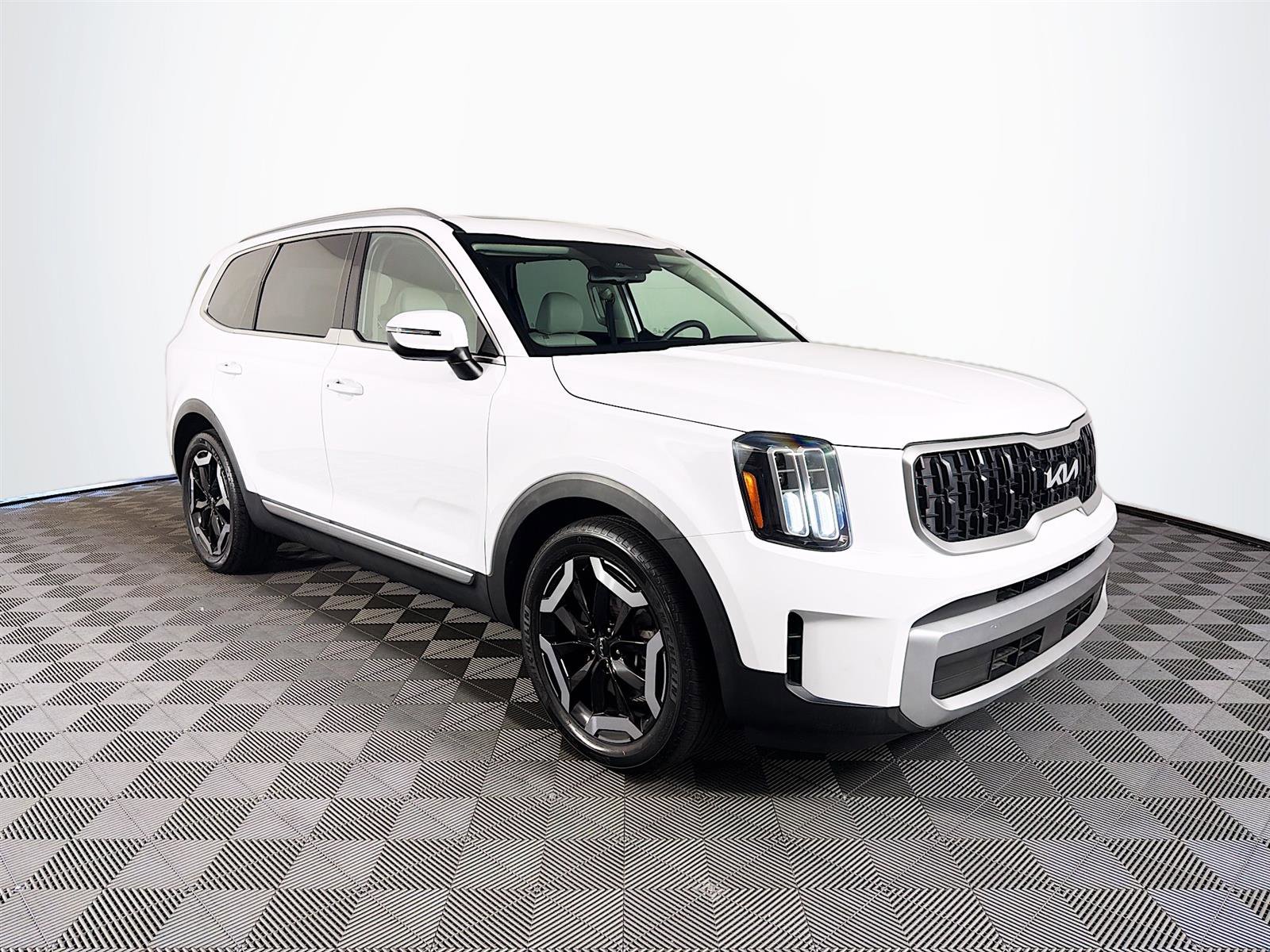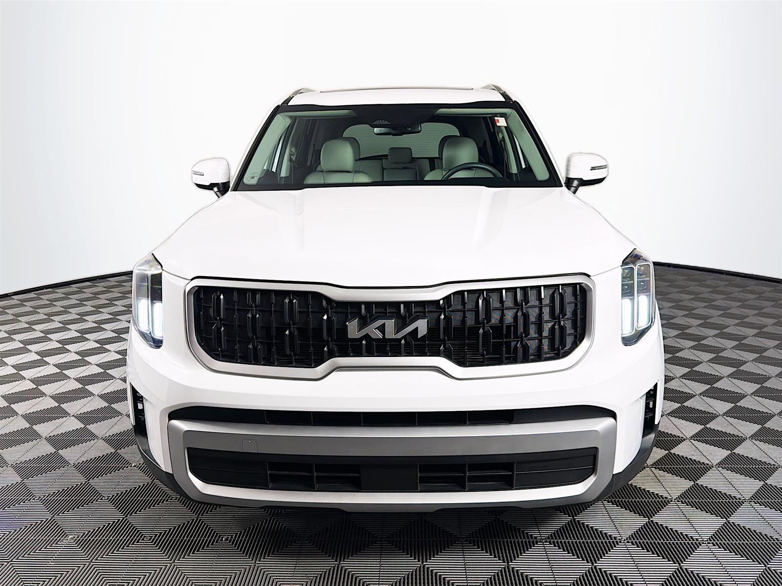 This 2023 Kia Telluride EX in Glacial White Pearl features Kia Certified Pre-Owned Certified, 3.648 Axle Ratio, 3rd row seats: split-bench, 4-Wheel Disc Brakes, 6 Speakers, ABS brakes, Air Conditioning, Alloy wheels, AM/FM radio: SiriusXM, Apple CarPlay & Android Auto, Auto High-beam Headlights, Auto-dimming Rear-View mirror, Automatic temperature control, Brake assist, Bumpers: body-color, Carpet Floor Mats, Compass, Delay-off headlights, Driver door bin, Driver vanity mirror, Dual front impact airbags, Dual front side impact airbags, Electronic Stability Control, Emergency communication system: 911 Connect, Exterior Parking Camera Rear, Four wheel independent suspension, Front anti-roll bar, Front Bucket Seats, Front Center Armrest, Front dual zone A/C, Front reading lights, Fully automatic headlights, Heated & Ventilated Front Bucket Seats, Heated door mirrors, Heated front seats, Heated steering wheel, Hybrid Cargo Net, Illuminated entry, Knee airbag, Leather Seat Trim, Leather Shift Knob, Leather steering wheel, Low tire pressure warning, Navigation System, Occupant sensing airbag, Outside temperature display, Overhead airbag, Overhead console, Panic alarm, Passenger door bin, Passenger vanity mirror, Power door mirrors, Power driver seat, Power Liftgate, Power moonroof, Power passenger seat, Power steering, Power windows, Radio data system, Radio: AM/FM Display Audio System, Rear air conditioning, Rear anti-roll bar, Rear audio controls, Rear reading lights, Rear seat center armrest, Rear side impact airbag, Rear window defroster, Rear window wiper, Reclining 3rd row seat, Remote keyless entry, Roof rack: rails only, Security system, Smart Key w/ Push Button and Remote Start, Speed control, Speed-sensing steering, Split folding rear seat, Spoiler, Steering wheel mounted audio controls, Tachometer, Telescoping steering wheel, Tilt steering wheel, Traction control, Trip computer, Turn signal indicator mirrors, Variably intermittent wipers, Ventilated front seats. Wheels: 20 x 7.5 Black Finish. Certified. CARFAX One-Owner. Odometer is 17095 miles below market average!