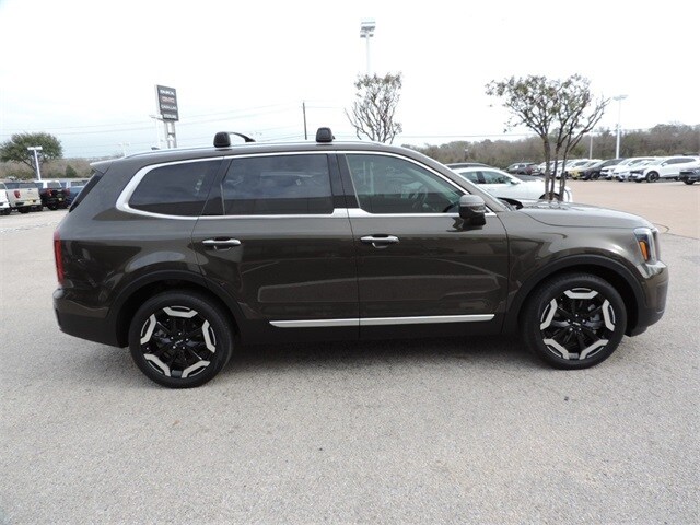 Sterling Kia 197 N Earl Rudder Freeway Bryan TX 77845. Certified. Recent Arrival! Heated Seats, 151 Point Used Car Inspection, Second row captains chairs, 3rd row seating, local trade in - never a rental, Telluride S, 3.8L V6 DGI DOHC Dual CVVT, AWD, Black Artificial Leather, Navigation System. CARFAX One-Owner. Odometer is 40146 miles below market average! "Sterling Makes It Easy" Sterling Kia has been serving the local community over 20 years! Dark Moss 2023 Kia Telluride S AWD 8-Speed Automatic 3.8L V6 DGI DOHC Dual CVVT.