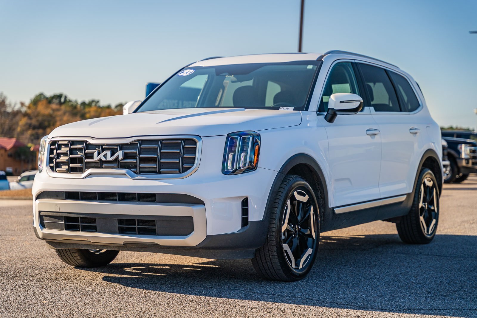 This vehicle comes equipped with S Sunroof Package (Power Sunroof w/Sunshade), Kia Certified, 3.510 Axle Ratio, 3rd row seats: split-bench, 4-Wheel Disc Brakes, 6 Speakers, ABS brakes, Air Conditioning, Alloy wheels, AM/FM radio: SiriusXM, Apple CarPlay & Android Auto, Auto High-beam Headlights, Automatic temperature control, Brake assist, Bumpers: body-color, Carpet Floor Mats, Delay-off headlights, Driver door bin, Driver vanity mirror, Dual front impact airbags, Dual front side impact airbags, Electronic Stability Control, Emergency communication system: 911 Connect, Exterior Parking Camera Rear, Four wheel independent suspension, Front anti-roll bar, Front Bucket Seats, Front Center Armrest, Front dual zone A/C, Front reading lights, Fully automatic headlights, Heated door mirrors, Heated Front Bucket Seats, Heated front seats, Illuminated entry, Knee airbag, Leather Shift Knob, Leather steering wheel, Low tire pressure warning, Navigation System, Occupant sensing airbag, Outside temperature display, Overhead airbag, Overhead console, Panic alarm, Passenger door bin, Passenger vanity mirror, Power door mirrors, Power driver seat, Power steering, Power windows, Radio data system, Radio: AM/FM Display Audio System, Rear air conditioning, Rear anti-roll bar, Rear audio controls, Rear reading lights, Rear side impact airbag, Rear window defroster, Rear window wiper, Reclining 3rd row seat, Remote keyless entry, Roof rack: rails only, Security system, Smart Key w/ Push Button and Remote Start, Speed control, Speed-sensing steering, Split folding rear seat, Spoiler, Steering wheel mounted audio controls, SynTex Synthetic Leather Seat Trim, Tachometer, Telescoping steering wheel, Tilt steering wheel, Traction control, Trip computer, Turn signal indicator mirrors, Variably intermittent wipers, and Wheels: 20" x 7.5" Black Finish.
