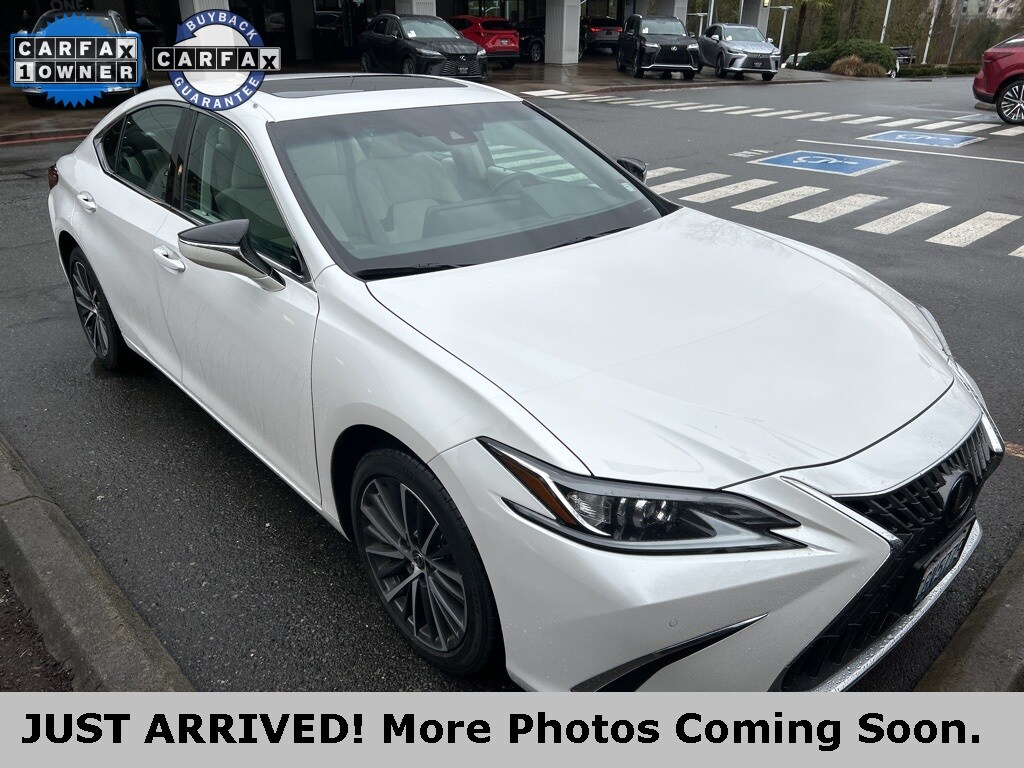 CARFAX One-Owner. Clean CARFAX. 2 YEARS OR 20K MILES MAINTENANCE INCLUDED!, One owner on Carfax!, Lexus factory certified, AWD, back up camera, Bluetooth, heated and ventilated seats, navigation, parking sensors, premium package, Wireless Apple Carplay / Android Auto Capability, Blind Spot Monitor with Rear Cross-Traffic Alert, Lexus Safety System+ 2.5, Pre-Collision System with Pedestrian Detection, All Speed- Dynamic Radar Cruise Control, Lane Tracing Assist, Lane Departure Alert w/ Steering Assist, Intelligent High Beam Headlamps & Road Sign Assist, Macadamia/Bamboo w/Perforated NuLuxe Seat Trim (LD), 10 Speakers, Active Cruise Control, Heated & Ventilated Seats, Heated Leather 3-Spoke Steering Wheel, Intuitive Parking Assist w/Auto Braking, Memory seat, Navigation System, Parking Support Alert/Brake, Perforated NuLuxe Seat Trim (LD), Power Tilt/Telescoping Steering Wheel w/Memory, Power-Folding Outside Mirrors w/Memory, Premium Package, Radio: Lexus Interface w/8 Multimedia Touch Scrn, Rain Sensing Wipers, Speed control, Windshield De-Icer, Wireless Apple CarPlay/Wireless Android Auto, Wireless Charger. 2023 Lexus ES 250 Premium Eminent White Pearl AWD I4 8-Speed Automatic Certified. L/Certified Details: Roadside Assistance, Certified Warranty: Comprehensive Inspection, Unlimited-mileage warranty up to 6 years. Balance of new car warranty (4 Year/50K Miles) plus 2 Year/Unlimited-mileage L/Certified warranty. Service Maintenance: Complimentary Maintenance Plan covering the first four basic factory-scheduled maintenance services for 2 years or 20,000 miles. Warranty Deductible: $0. Vehicle History. Limited Warranty: 24 Month/Unlimited Mile 25/34 City/Highway MPG. Come to www.lexusofbellevue.com To See Our Specials!! Call us at 425-455-9995 for Help with any of our departments. Enjoy a seamless, transparent luxury buying experience at Lexus of Bellevue and Lexus Plus. A dealer documentary service fee in an amount up to two hundred dollars may be added to the sale price or capitalized cost.