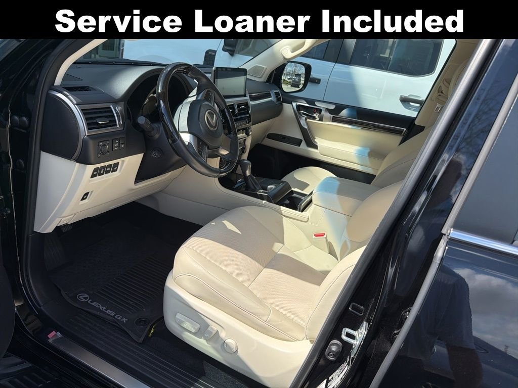 L/Certified Certified, 18" x 7.5J Aluminum Alloy Wheels, 2nd Row Captain's Chairs, 3.909 Axle Ratio, 3rd Row Power Seats, 3rd row seats: split-bench, 4-Wheel Disc Brakes, 9 Speakers, ABS brakes, Air Conditioning, All Weather Floor Liners w/Cargo Mat, Alloy wheels, AM/FM radio: SiriusXM, Anti-whiplash front head restraints, Apple CarPlay/Android Auto, Auto High-beam Headlights, Auto tilt-away steering wheel, Auto-dimming Rear-View mirror, Automatic temperature control, Brake assist, Bumpers: body-color, Cargo-Area Tonneau Cover, CD player, Compass, Delay-off headlights, Driver door bin, Driver vanity mirror, Driver's Seat Mounted Armrest, Dual Front & Rear Auto Air Conditioner, Dual front impact airbags, Dual front side impact airbags, Electronic Stability Control, Emergency communication system: Safety Connect (3-year trial), Exterior Parking Camera Rear, Front & Rear Heated Seats, Front anti-roll bar, Front Bucket Seats, Front dual zone A/C, Front reading lights, Front wheel independent suspension, Fully automatic headlights, Garage door transmitter: HomeLink, Headlamp Washers, Heated door mirrors, Heated Wood & Leather Steering Wheel, Illuminated entry, Illuminated running boards, Knee airbag, Leather Shift Knob, Leather steering wheel, LED Front Fog & Driving Lamp, Low tire pressure warning, Memory seat, Navigation system: Lexus Enform Dynamic Navigation, NuLuxe Seat Trim, NuLuxe Seat Trim (EA), Occupant sensing airbag, Outside temperature display, Overhead airbag, Overhead console, Panic alarm, Passenger door bin, Passenger seat mounted armrest, Passenger vanity mirror, Power door mirrors, Power driver seat, Power moonroof, Power passenger seat, Power steering, Power windows, Premium Plus Package w/Captain's Chairs, Radio data system, Radio: Lexus Multimedia System w/Navigation, Rear anti-roll bar, Rear reading lights, Rear seat center armrest, Rear side impact airbag, Rear window defroster, Rear window wiper, Remote keyless entry, Roof rack: rails only, Safety Connect, Security system, Speed control, Speed-sensing steering, Split folding rear seat, Spoiler, Steering wheel memory, Steering wheel mounted audio controls, Tachometer, Telescoping steering wheel, Tilt steering wheel, Traction control, Trip computer, Turn signal indicator mirrors, Variably intermittent wipers, Ventilated Front Seats. 2023 Lexus GX 460.