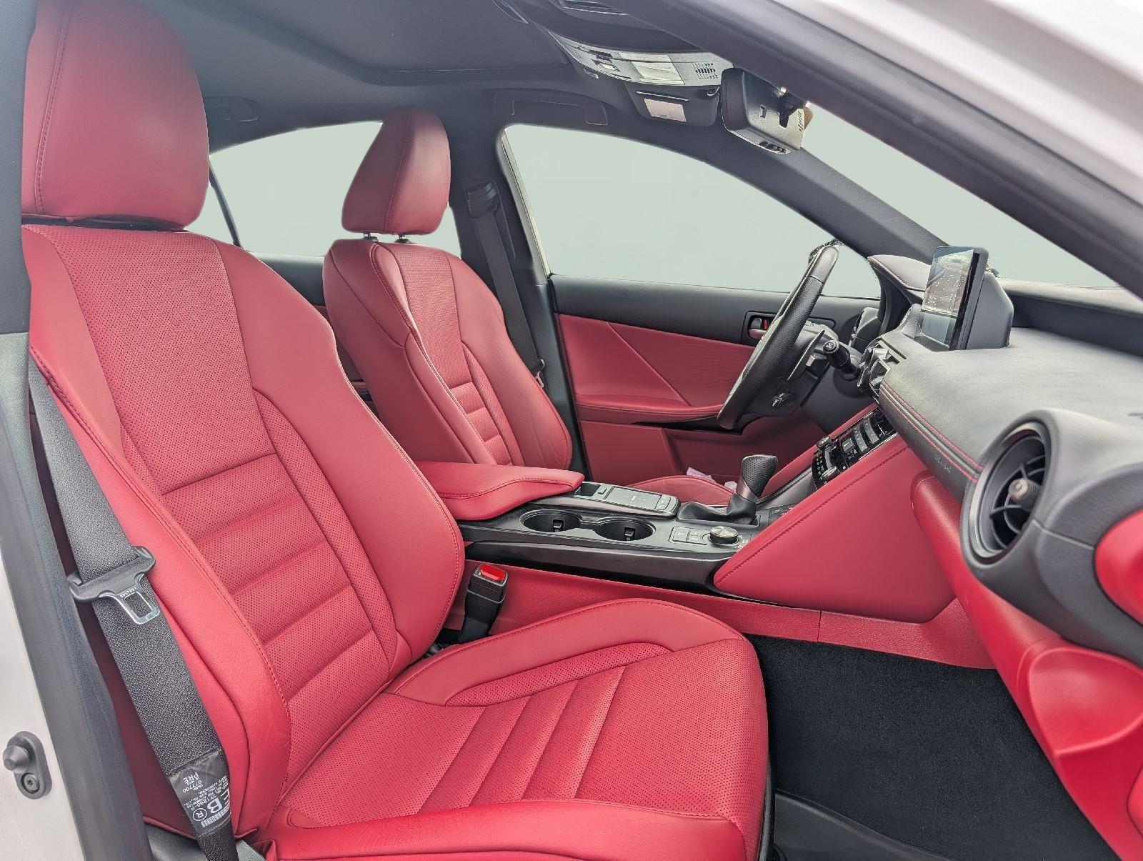 This Certified 2023 Lexus IS 350 F SPORT, has a Ultra White exterior and an Circuit Red w/ Black Geometric Trim interior color. 26,338 miles. Stock Number XL26174. You can connect with us by calling (585) 533-7984. No Accidents! One Owner! CERTIFIED WARRANTY: Comprehensive Inspection, Unlimited-mileage warranty up to 6 years. Balance of new car warranty (4 Year/50K Miles) plus 2 Year/Unlimited-mileage L/Certified warranty. SERVICE MAINTENANCE: Complimentary Maintenance Plan covering the first four basic factory-scheduled maintenance services for 2 years or 20,000 miles. Forward Collision and Cross Traffic Mitigation is your doting eyes for crossing tees. Pedestrians don't always stop, look, and listen, but with Pedestrian Impact Prevention, your vehicle is equipped to better see them and avoid them. This system constantly monitors the road ahead to identify and track pedestrians. It projects that image to an interior display screen, and should an impact become likely, Pedestrian impact prevention takes steps to avoid a collision. Hands-on cruise control. Set it and forget it. Road trips used to be stressful. Cruise control only managed speed, but not distance or safety. Now, with hands-on cruise control, simply set your desired speed and let sensor technology maintain a safe distance between you and surrounding vehicles. Smart device mirroring - Smartphone, meet smart car. You can control your device through your vehicle's infotainment system. Smart device mirroring brings together safety and convenience by making it easier to find what you're looking for while keeping your eyes on the road.