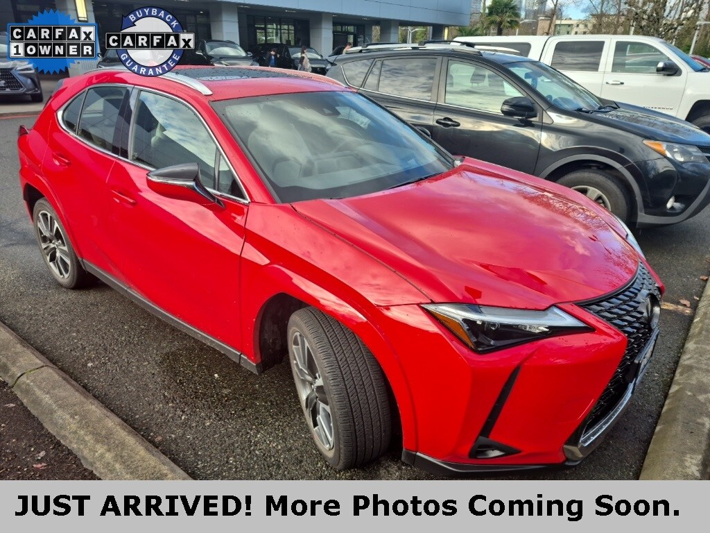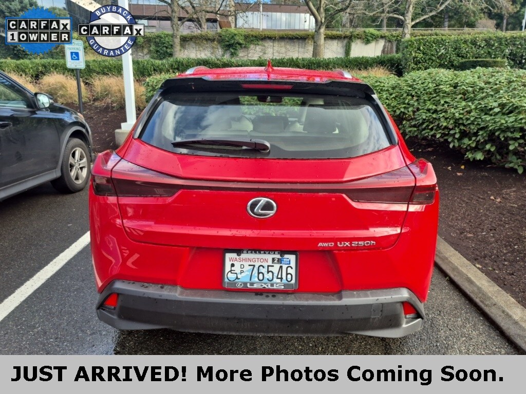 CARFAX One-Owner. Clean CARFAX. 2 YEARS OR 20K MILES MAINTENANCE INCLUDED!, ONE OWNER ON CARFAX!, LOCAL TRADE, LEXUS FACTORY CERTIFIED, AWD, BACK UP CAMERA, BLUETOOTH, HEATED AND VENTILATED SEATS, NAVIGATION, PREMIUM PACKAGE, Wireless Apple CarPlay and Android Auto Compatibility, Blind Spot Monitor with Rear Cross Traffic Alert, Lexus Safety System+ 2.5- Pre-Collision System w/Pedestrian Detection, Dynamic Radar Cruise Control, Lane Tracing Assist, Lane Departure Alert w/Steering Assist, Intelligent High Beam Headlamps, Road Sign Assist, 2.0L 16V DOHC, 6 Speakers, Active Cruise Control, Alloy wheels, Apple CarPlay/Android Auto, Auto-Dimming Rear-View Mirror, Color-Keyed Overfenders, Exterior Parking Camera Rear, Head-Up Display, Heated & Ventilated Front Bucket Seats, Heated 3-Spoke Leather Steering Wheel, Heated door mirrors, Intuitive Parking Assist, Leather Shift Knob, Leather steering wheel, Paint Wheel Arch Molding, Power Liftgate, Power moonroof, Power Rear Door w/Kick Sensor, Power Tilt & Slide Moonroof, Premium Package, Rain Sensing Windshield Wipers, Speed control, Wheels: 18 x 7J 5-Spoke Dark Gray Metallic, Wireless Charger. 2023 Lexus UX 250h Premium Redline AWD 2.0L 16V DOHC CVTCertified. L/Certified Details: Vehicle History, Roadside Assistance, Warranty Deductible: $0, Limited Warranty: 24 Month/Unlimited Mile, Certified Warranty: Comprehensive Inspection, Unlimited-mileage warranty up to 6 years. Balance of new car warranty (4 Year/50K Miles) plus 2 Year/Unlimited-mileage L/Certified warranty. Service Maintenance: Complimentary Maintenance Plan covering the first four basic factory-scheduled maintenance services for 2 years or 20,000 miles. Odometer is 25185 miles below market average! 41/38 City/Highway MPG. Come to www.lexusofbellevue.com To See Our Specials!! Call us at 425-455-9995 for Help with any of our departments. Enjoy a seamless, transparent luxury buying experience at Lexus of Bellevue and Lexus Plus. A dealer documentary service fee in an amount up to two hundred dollars may be added to the sale price or capitalized cost.