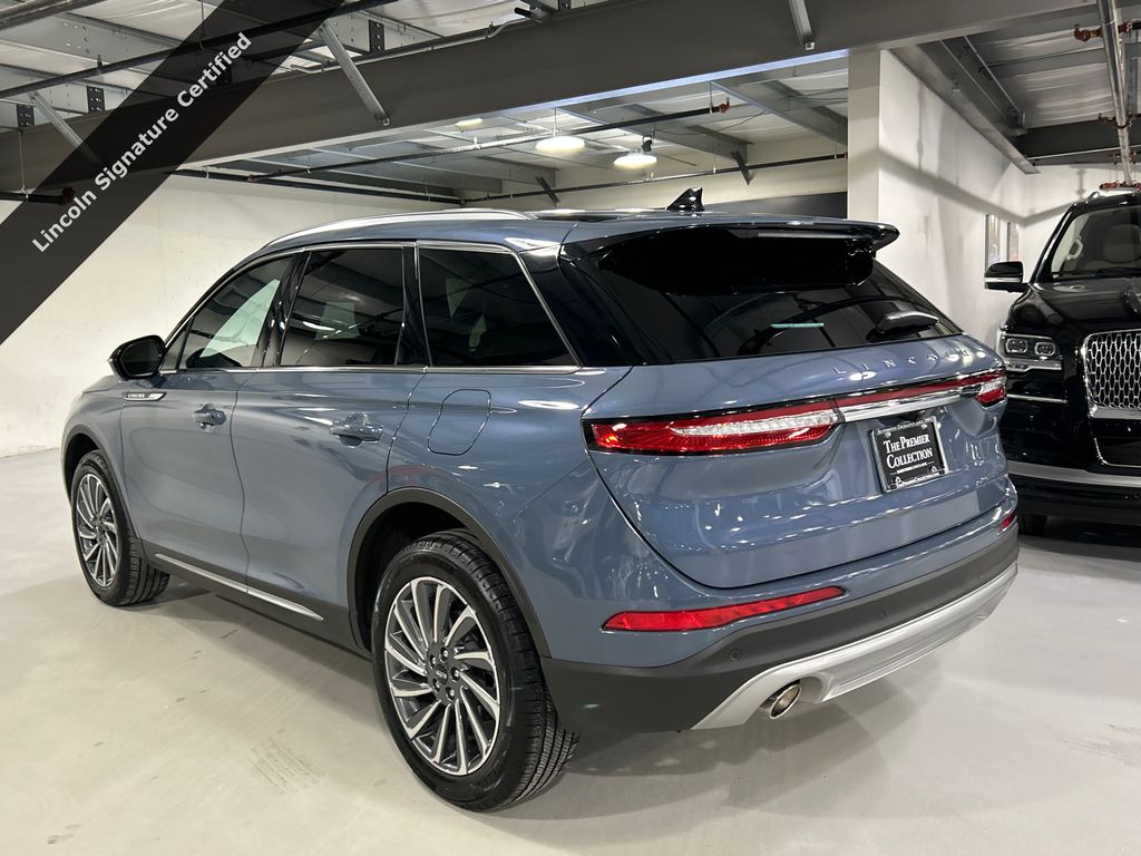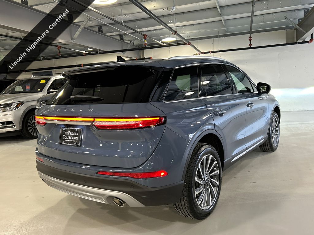 Certified by Volvo 2023 Lincoln Corsair Reserve SUV. Located at Lincoln White Plains. This luxury SUV features a Blue Metallic exterior and Ebony/Cashew interior. It is equipped with a 2.0L Turbocharged engine, all-wheel drive, and a host of premium features. The vehicle has 20,343 miles and offers a smooth and quiet driving experience with great performance.