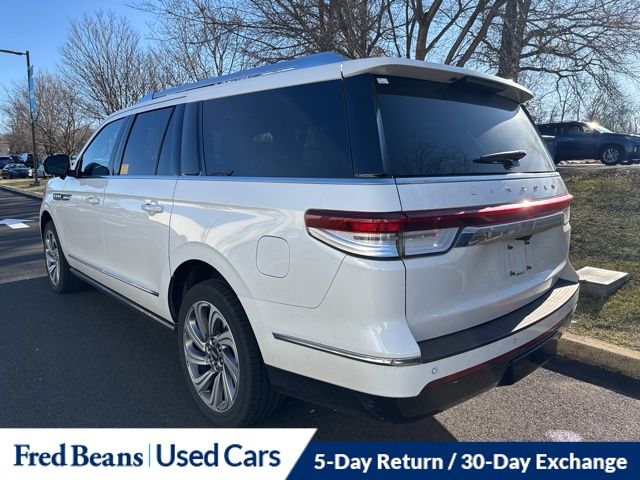 Recent Arrival! This 2023 Lincoln Navigator L Reserve is luxury on a grand scale, finished in striking Pristine White Metallic Tri-Coat and offered as a CARFAX One-Owner, clean-history local trade that was bought and serviced right here at Fred Beans. Powered by a smooth and commanding V6 paired with a 10-speed automatic transmission and 4WD, this full-size luxury SUV delivers confident performance, refined ride quality, and serious towing capability thanks to the Heavy-Duty Trailer Tow Package, electronic limited-slip differential, Pro Trailer Backup Assist 2.0, and Smart Trailer Tow. The cabin is where the Navigator truly shines. You’re welcomed by illuminated deploying running boards and a beautifully appointed interior featuring ambient lighting, heated and ventilated front and rear seats, heated steering wheel, and Lincoln’s 30-way Perfect Position seats with Active Motion. The panoramic Vista Roof floods the interior with natural light, while the Revel Ultima 3D audio system with 28 speakers delivers a concert-quality listening experience. A large digital interface with connected navigation, voice-activated touchscreen controls, wireless Apple CarPlay and Android Auto, and wireless charging keeps you seamlessly connected on every drive. Advanced safety and driver-assist technology are everywhere you look, including adaptive cruise control, lane assist, blind spot monitoring with rear traffic alert, a 360-degree camera system, front and rear parking sensors, heads-up display, and adaptive LED headlamps. Adaptive suspension ensures a smooth, composed ride whether cruising the highway or towing with confidence, and the bold 22-inch bright-machined aluminum wheels complete the Navigator’s commanding presence. This Navigator L is Lincoln Certified Pre-Owned, giving you exceptional peace of mind with a 72-month or 100,000-mile limited warranty from the original in-service date, roadside assistance, rental and trip interruption coverage, and a comprehensive 200-point inspection. It also includes a free first oil change, our 5-day return and 30-day exchange policy, and enrollment in the Fred Beans Auto Rewards Program, where you can enjoy free Pennsylvania state inspections, local merchant discounts, and earn up to $2,000 toward your next vehicle just by servicing with us. At Fred Beans, our used vehicles are better, because our reputation depends on it.