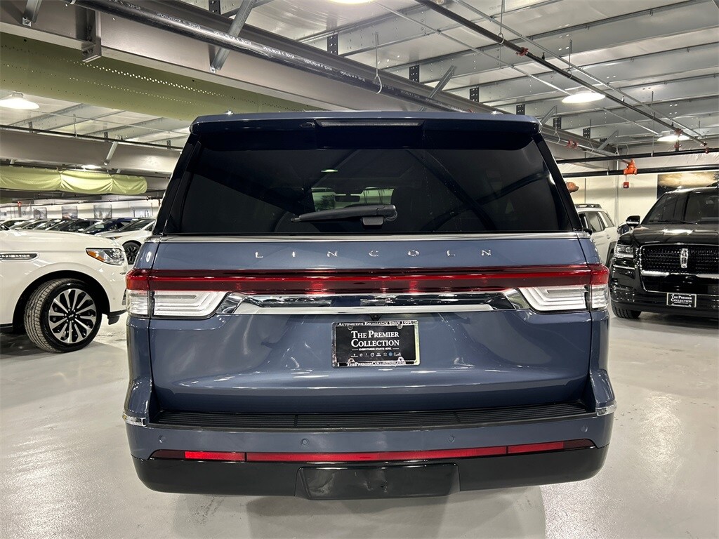Certified by Volvo 2023 Lincoln Navigator L L Reserve SUV. Located at Lincoln White Plains. This vehicle offers a comfortable and spacious interior with seating for up to eight, a powerful V6 engine, and a range of luxury features. The Navigator L is designed for both family comfort and long trips, with a smooth ride and advanced technology. Its exterior may not be as new or aggressive as some competitors, but its elegant styling and full leather dash with wood trim make it stand out.