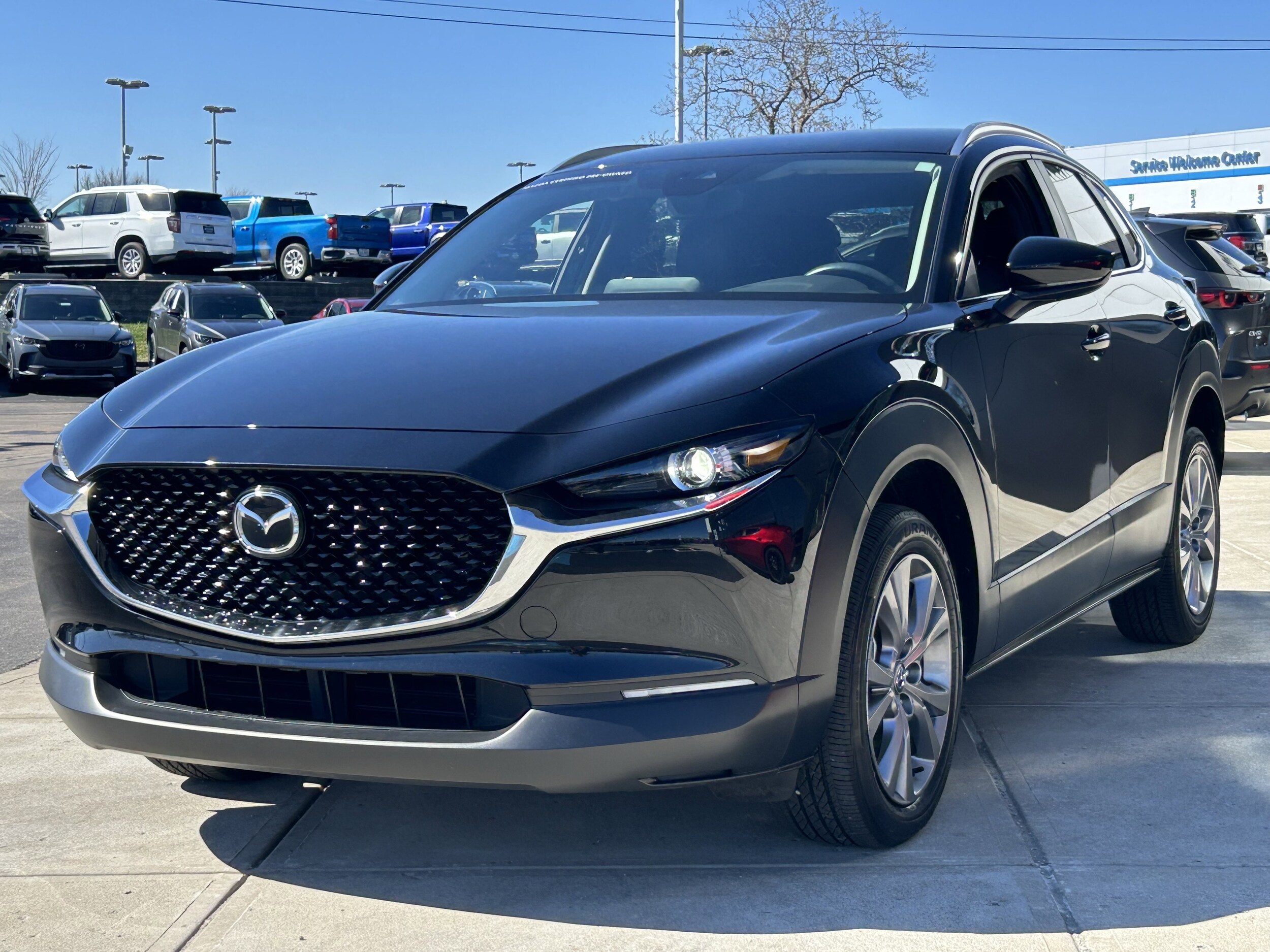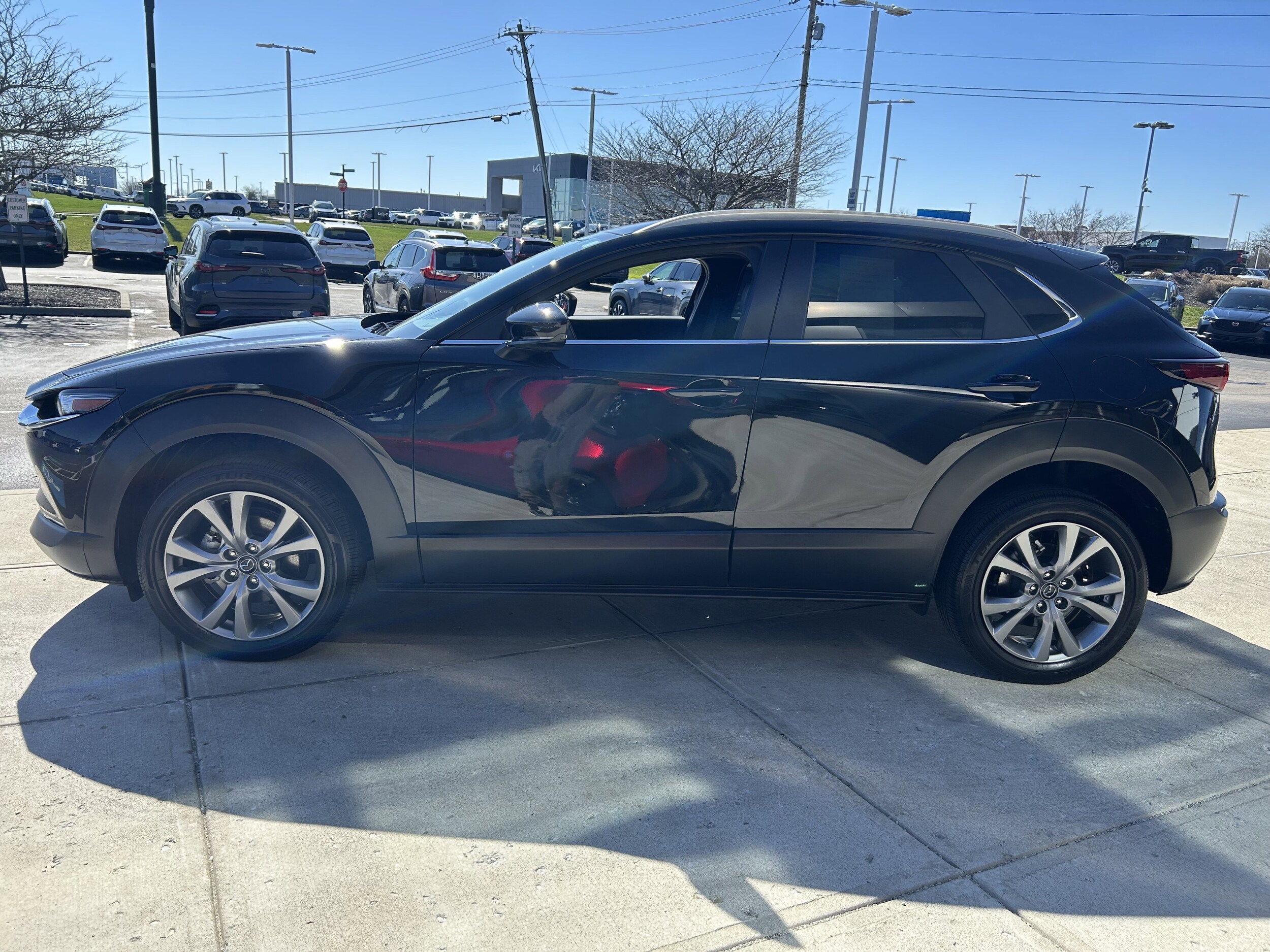 Certified. CARFAX One-Owner. Heated front seats, back up camera, hands free Bluetooth, cruise control, all wheel drive/ AWD, clean CARFAX, local trade, Mazda certified, MP3, one owner, alloy wheels, AppLink/Apple CarPlay and Android Auto, automatic temperature control, exterior parking camera rear, front dual zone A/C, illuminated entry, leatherette seat trim, memory seat, moon roof credit, panic alarm, power driver seat, remote keyless entry, speed control, steering wheel mounted audio controls, telescoping steering wheel, tilt steering wheel, turn signal indicator mirrors. 26/33 City/Highway MPG Odometer is 15393 miles below market average! Clean CARFAX. Jet Black Mica 2023 Mazda CX-30 2.5 S Preferred Package AWD 6-Speed Automatic SKYACTIV 2.5L 4-Cylinder DOHC 16V. All vehicles are subject to prior sale. Price does not include applicable tax, title, license, and a $398.00 documentation fee or other fees required by law, lending institutions, and/or lessors. Vehicles shown at different locations are not currently in our inventory (not in stock) but can be made available at our location within a reasonable time after your request.