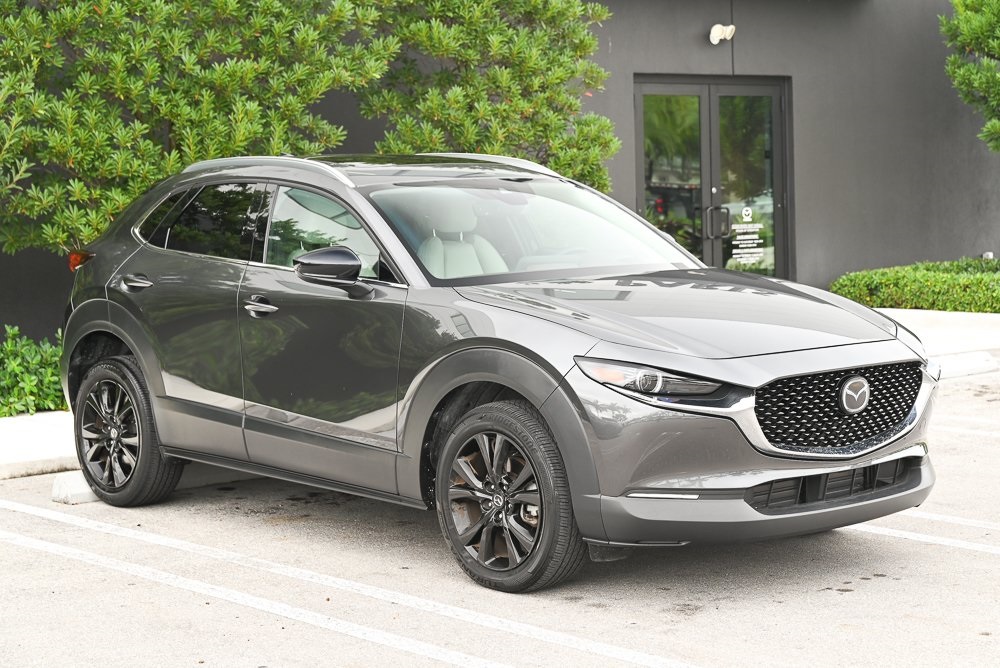 CARFAX One-Owner. Certified. Machine Gray Metallic 2023 Mazda CX-30 2.5 Turbo Premium Package 2.5L I4. Mazda Certified Pre-Owned Details: Vehicle History, Roadside Assistance, Powertrain Limited Warranty: 84 Month/100,000 Mile (whichever comes first) from original in-service date, Warranty Deductible: $0, Transferable Warranty, Includes Autocheck Vehicle History Report with 3 Year Buyback Protection. 3 month SiriusXM trial subscription. Limited Warranty: 12 Month/12,000 Mile (whichever comes first) after new car warranty expires or from certified purchase date. 160 Point Inspection. Priced below KBB Fair Purchase Price! Odometer is 10629 miles below market average! 22/30 City/Highway MPG. Unequaled joy. Certified. Every Mazda is built with passion. It’s reflected in our dynamic designs. Visible in our beautifully crafted interiors. You feel it in the heightened handling. That’s what every Mazda Certified Pre-Owned Vehicle (CPO) delivers. Each has been scrutinized and meticulously tested in our 160-point inspection. So every time you’re behind the wheel, you can focus on the joy of driving.