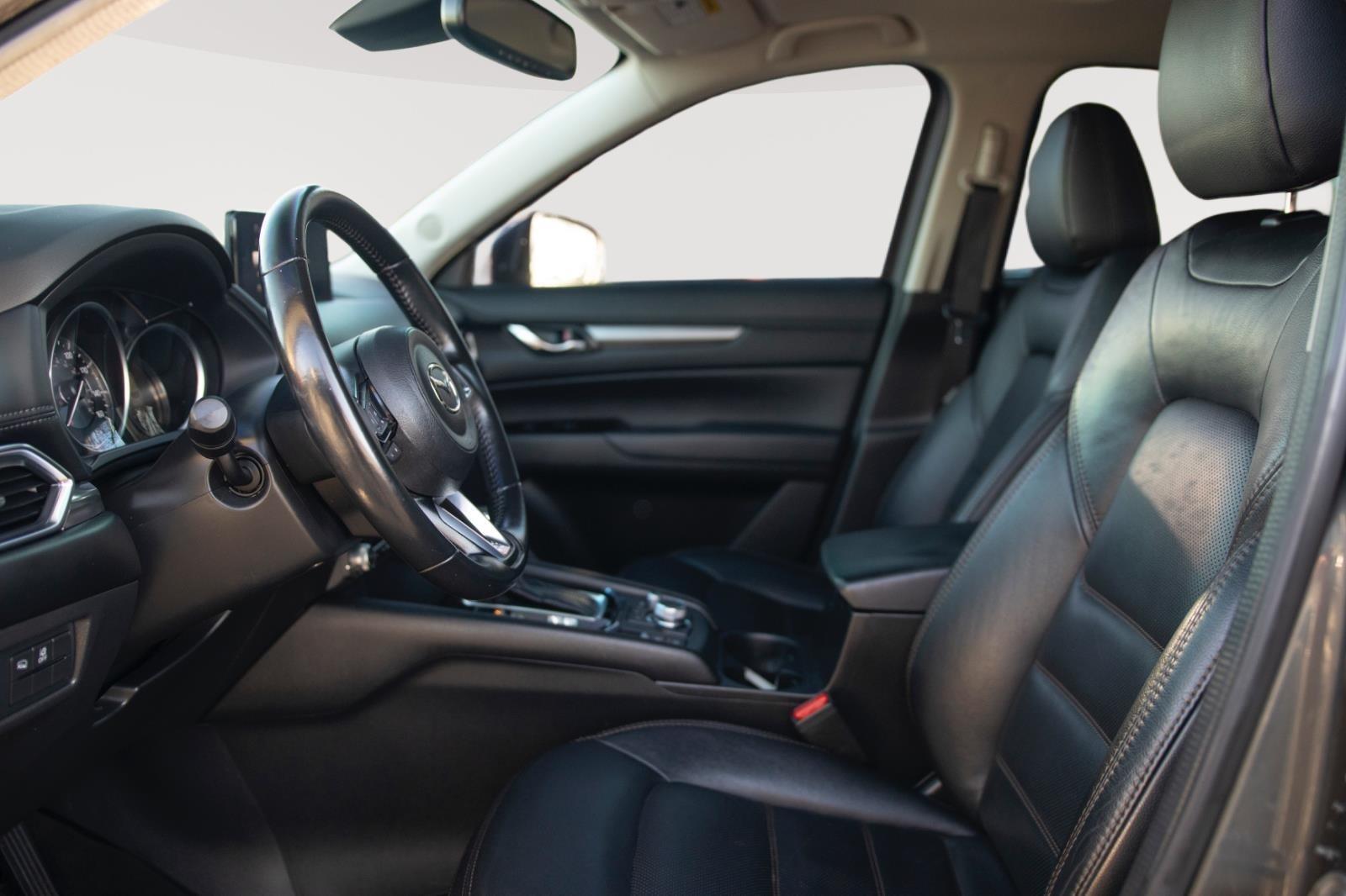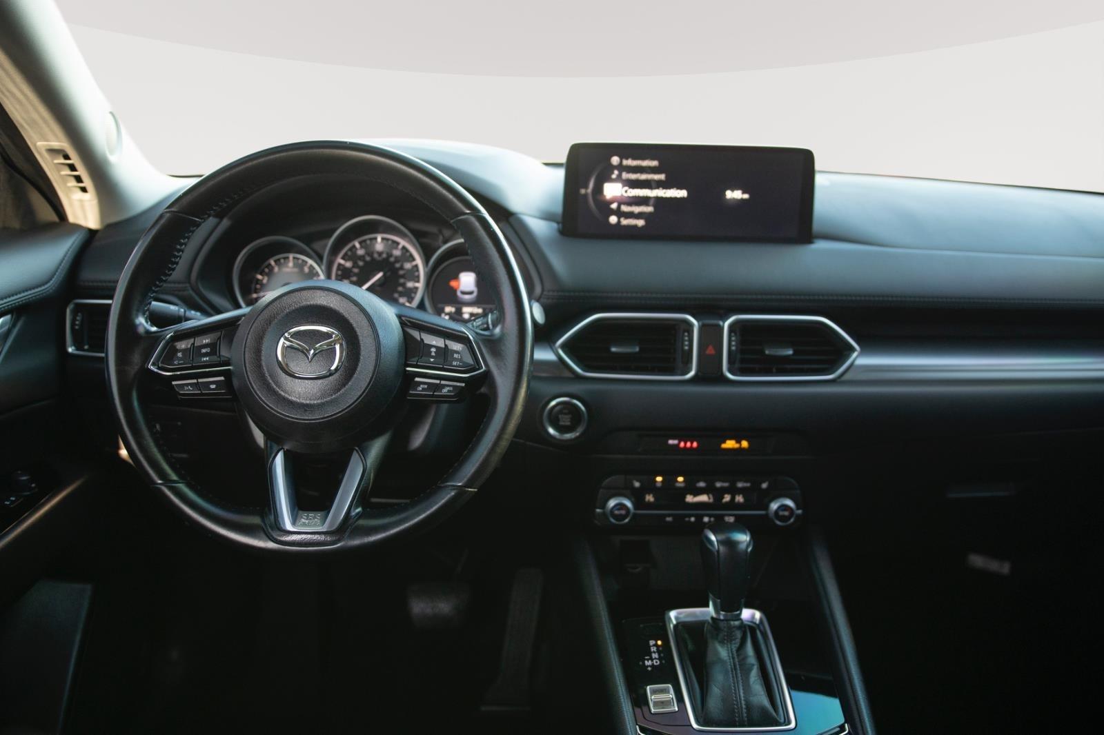 Look at this 2023 Mazda CX-5 2.5" S "intelligent" cruise control system uses laser or radar to maintain a preset following distance behind another vehicle, automatically braking (to a complete stop if needed) or accelerating as required. Cruise control maintains a preset vehicle speed; automatically increasing or decreasing throttle to maintain that speed. The vehicle is equipped with a system that senses, and then prepares, the vehicle and/or occupants, for an impending forward collision. The vehicle constantly monitors the roadway in front of the vehicle and identifies and tracks pedestrians on an interior display. If the system determines a likely impact, it will automatically take preventative steps to avoid hitting the pedestrian. The vehicle is equipped with a camera that displays an image of the area behind the vehicle on an interior display. An active lane departure system alerts the driver of unintended movement of the vehicle out of a designated traffic lane and automatically maintains the vehicle's position within that lane. Brake assist senses panic braking from the speed of the brake pedal's travel and applies all available power brake boost. The vehicle infotainment system can access and control functions of a smart device physically plugged-into the vehicle. Mobile devices can wirelessly connect to the internet through the vehicle's private mobile network.