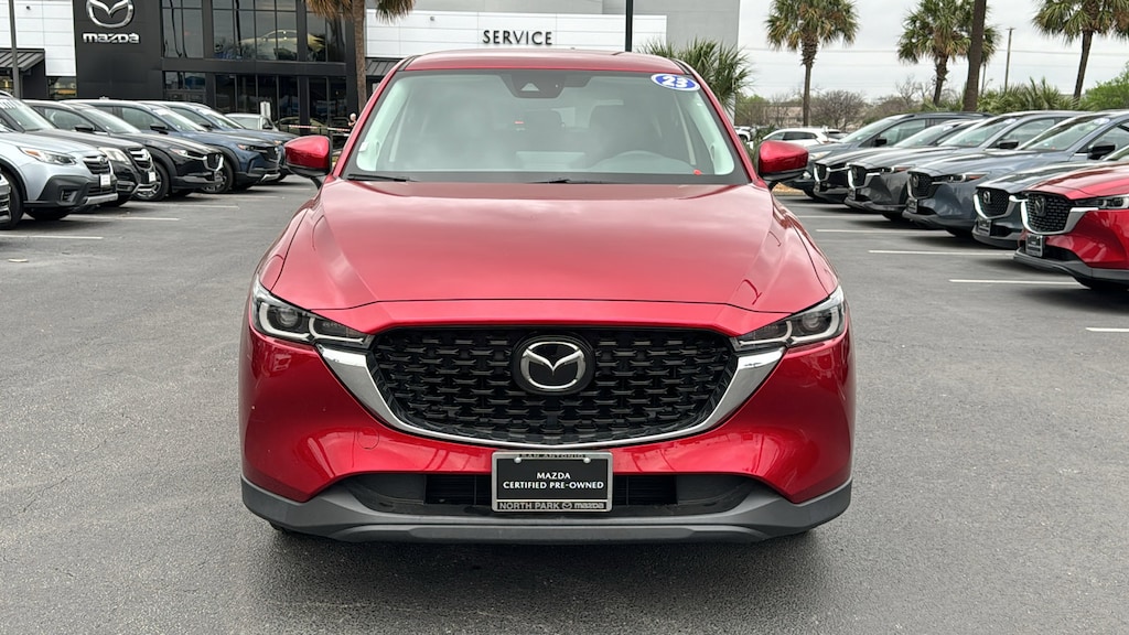 North Park Mazda is honored to offer this gorgeous 2023 Mazda CX-5 2.5 S Select Package. Well equipped with 4-Wheel Disc Brakes, 4.624 Axle Ratio, 6 Speakers, ABS brakes, Air Conditioning, Alloy wheels, AM/FM radio, AppLink/Apple CarPlay and Android Auto, Auto High-beam Headlights, Automatic temperature control, Brake assist, Bumpers: body-color, Delay-off headlights, Driver door bin, Driver vanity mirror, Dual front impact airbags, Dual front side impact airbags, E911 Automatic Emergency Notification, Electronic Stability Control, Emergency communication system: Mazda Connect, Exterior Parking Camera Rear, Four wheel independent suspension, Front anti-roll bar, Front Bucket Seats, Front Center Armrest w/Storage, Front dual zone A/C, Front reading lights, Fully automatic headlights, Heated Front Bucket Seats, Heated front seats, Illuminated entry, Infotainment System Voice Command, Leather Shift Knob, Leatherette Seat Trim, Low tire pressure warning, Multifunction Commander Control, Occupant sensing airbag, Outside temperature display, Overhead airbag, Overhead console, Pandora, Panic alarm, Passenger door bin, Passenger vanity mirror, Power door mirrors, Power driver seat, Power steering, Power windows, Radio Broadcast Data System Program Information, Radio data system, Radio: AM/FM/HD Audio System, Rain sensing wipers, Rear anti-roll bar, Rear Bumper Guard, Rear reading lights, Rear seat center armrest, Rear window defroster, Rear window wiper, Remote keyless entry, SMS Text Msg Audio Delivery & Reply, Soul Red Crystal Metallic Paint, Speed control, Speed-sensing steering, Split folding rear seat, Spoiler, Steering wheel mounted audio controls, Tachometer, Telescoping steering wheel, Tilt steering wheel, Traction control, Trip computer, Turn signal indicator mirrors, Variably intermittent wipers, and Wheels: 17" x 7J Aluminum Alloy.
