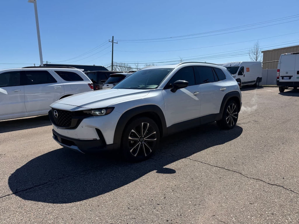 Our One Owner, Dealer Certified 2023 Mazda CX-50 2.5 Turbo Premium Plus AWD accentuates your driving experience with a daring Wind Chill Pearl design! Motivated by a TurboCharged 2.5 Liter 4 Cylinder that provides 227hp to a paddle-shifted 6 Speed Automatic transmission. You can also rely on Off-road, Sport, and Towing modes to adapt to different conditions, and this All Wheel Drive SUV returns nearly 29mpg on the highway. Our Mazda CX-50 moves you with dynamic style almost everywhere, thanks to LED adaptive front lighting, a panoramic sunroof, a power liftgate, upsized dual exhaust outlets, heated power-folding mirrors, rain-sensing wipers, and 20-inch alloy wheels. Move to our 2.5 Turbo Premium Plus cabin for refined details like heated/ventilated leather power front and heated rear seats, a heated leather steering wheel, a heated leather steering wheel, dual-zone climate control, advanced keyless entry/ignition, and Mazdas intelligent infotainment technology. Stay in touch and on track with a backup camera.