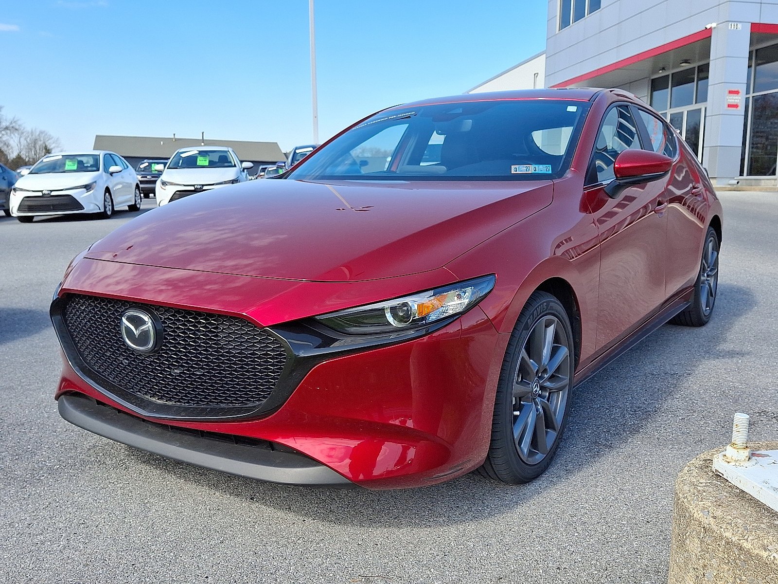 Discover the perfect blend of style, performance, and efficiency with this 2023 Mazda3 Hatchback 2.5 S Preferred. Dressed in a stunning Soul Red Crystal Metallic exterior with a chic Black interior, this vehicle is designed to turn heads while delivering an exhilarating driving experience. Powered by a Skyactiv-G 2.5L I-4 gasoline direct injection engine, this Mazda3 boasts an impressive 191 horsepower, featuring advanced DOHC and variable valve control for enhanced performance and efficiency. The innovative cylinder deactivation technology helps optimize fuel consumption, making it an economical choice for daily commutes or weekend adventures. This certified pre-owned Mazda3 ensures that you receive a high-quality vehicle that has been thoroughly inspected and meets rigorous standards for performance and reliability. Equipped with an automatic transmission and front-wheel drive, this hatchback offers a smooth and responsive ride, making every journey enjoyable. Don't miss the opportunity to own a vehicle that combines dynamic design with cutting-edge technology. Experience the Mazda3 Hatchback 2.5 S Preferred today-where elegance meets innovation.