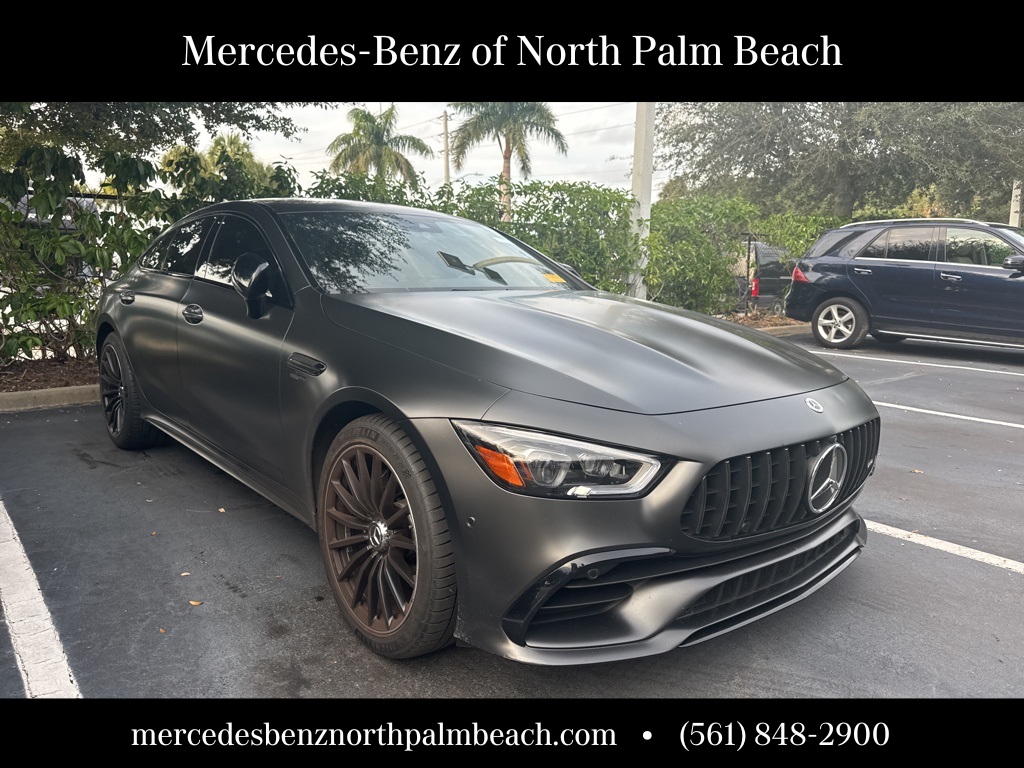 Clean CARFAX. Certified. MANUFAKTUR Graphite Gray Magno 2023 Mercedes-Benz AMG® GT 53 4MATIC® 9-Speed Automatic I6. Recent Arrival!