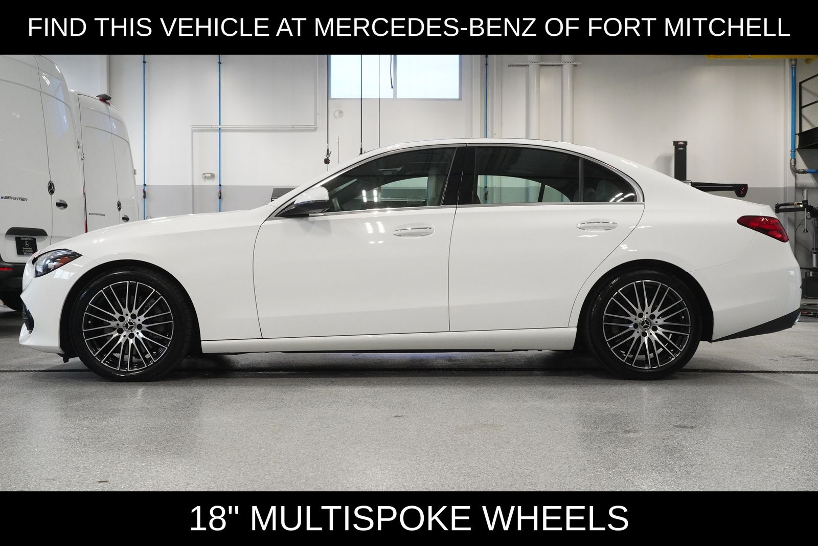 Mercedes-Benz of Fort Mitchell offers a Certified Pre Owned 2023 Mercedes-Benz C-Class C300 4MATIC. This sedan features a Polar White exterior and Macchiato Beige interior. The vehicle is equipped with a 9-Speed Automatic transmission, All-Wheel Drive, and a mild hybrid electric powertrain. It offers a comfortable and technology-rich driving experience with features like a premium audio system, Apple CarPlay/Android Auto, and heated front seats with memory.