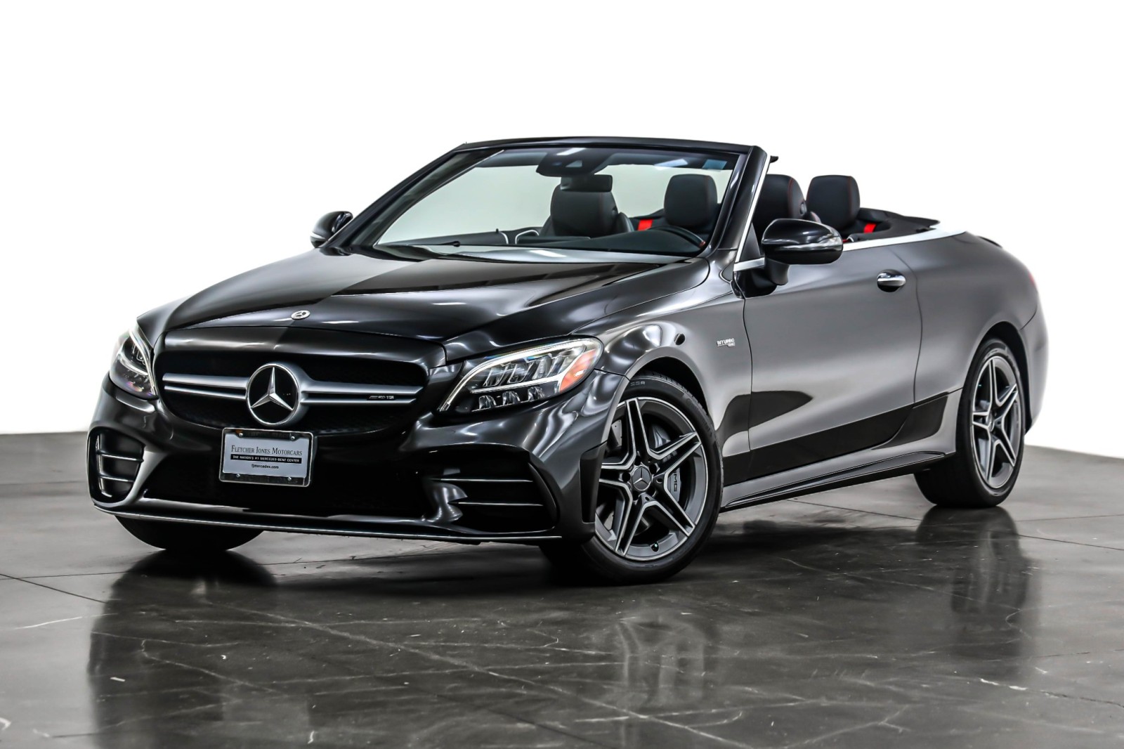 Fletcher Jones Motorcars does not reserve, or hold advertised vehicles, all are subject to prior sale on a first come first serve basis. Customer must take delivery of the vehicle and execute all California required documentation at Fletcher Jones Motorcars. We reserve the right to revise price, equipment, mileage, and certification status as a result of changing market conditions, manufacturer/distributor notices including recall notices, or errors. All vehicle pricing expires upon close of business the same day. The stock images shown are for illustration purposes only and are not an exact representation of the actual vehicle. Burmester is a registered trademark of Burmester Audiosysteme GmbH, Berlin, Germany. Bluetooth is a registered mark of Bluetooth SIG, Inc. Fletcher Jones Motorcars, the nation’s #1 certified pre-owned Mercedes-Benz sales center, presents this 2023 Mercedes-Benz AMG C 43 4MATIC Cabriolet. This Mercedes-Benz has 27,564 miles and comes in a Black-on-Black w/Red Stitching color combination. Live out of the area? Contact us to discuss convenient delivery options. (949) 718-3000.