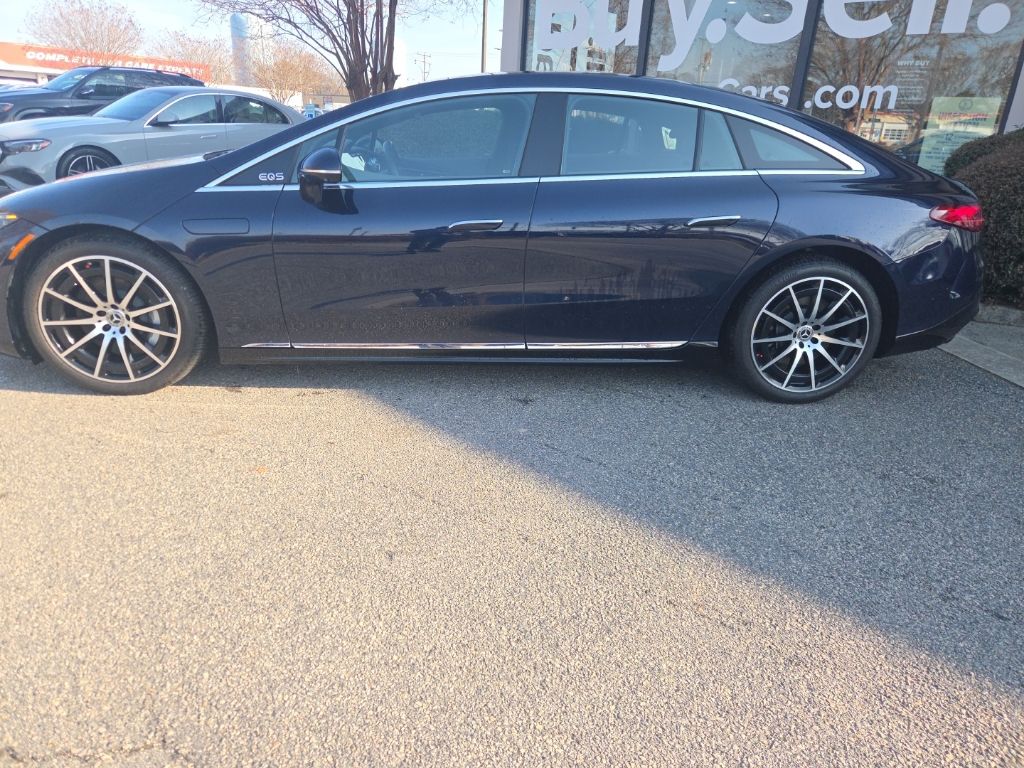 2023 Mercedes EQS 580 4MATIC sedan, Mercedes Certified with unlimited mile warranty! Recent arrival! Carfax One-Owner. Clean Carfax. Certified. Nautical Blue Metallic 2023 Mercedes-Benz EQS 580 4MATIC 1-Speed Automatic Electric Motor. Balance of factory warranty, Mercedes-Benz Certified, clean Carfax no damage one owner, local trade-in, service here, navigation, leather, full safety inspection complete, AMG Brushed Stainless Steel Drive Pedals, AMG Line Floormats, AMG Line Interior Package, AMG Line Sport Seat, Head-Up Display, Multifunction Sport Steering Wheel with Flat Bottom, Premium Trim Package, Wheels: 21" x 9.5J AMG Multi-Spoke Black Accents.