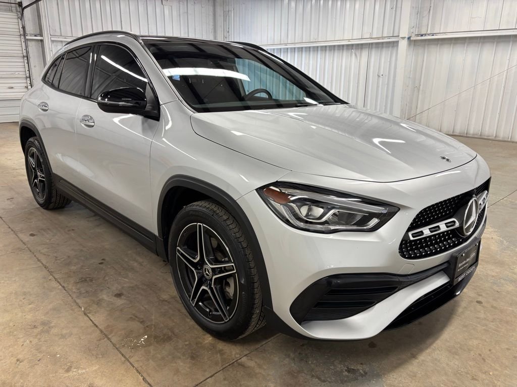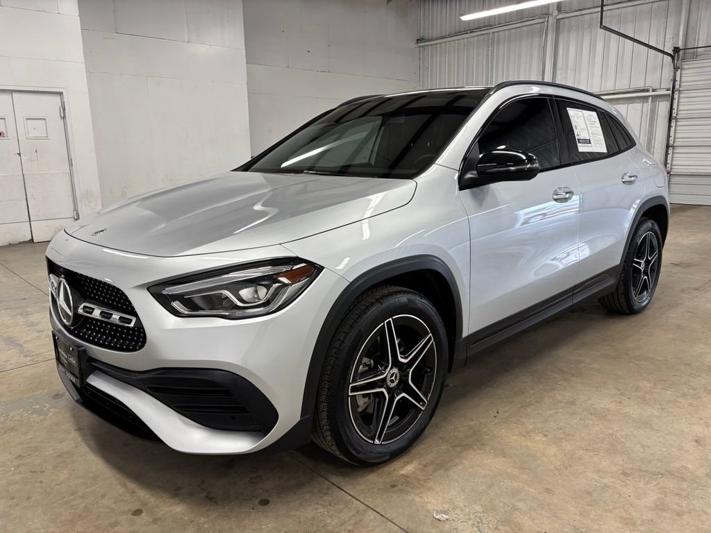 Certified. Silver 2023 Mercedes-Benz GLA GLA 250 FWD 8 Speed Dual Clutch 2.0L I4 Turbocharged, AM/FM/HD radio, Android Auto, Apple CarPlay, automatic headlamps, blind spot warning system, Bluetooth hands free calling, Carfax 1 owner, clean Carfax, daytime running lights, front USB charging ports, HID headlamps, keyless entry, lane departure warning, leather, LED headlights, local trade, moonroof, non smoker, panoramic moonroof, power adjustable driver's seat, power adjustable passenger seat, rear backup camera, rear park assist, rear traffic alert, remote start, voice activated navigation, 10.25" digital instrument cluster, 10.25" digital display. Recent Arrival! 24/34 City/Highway MPG.