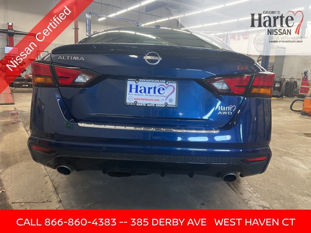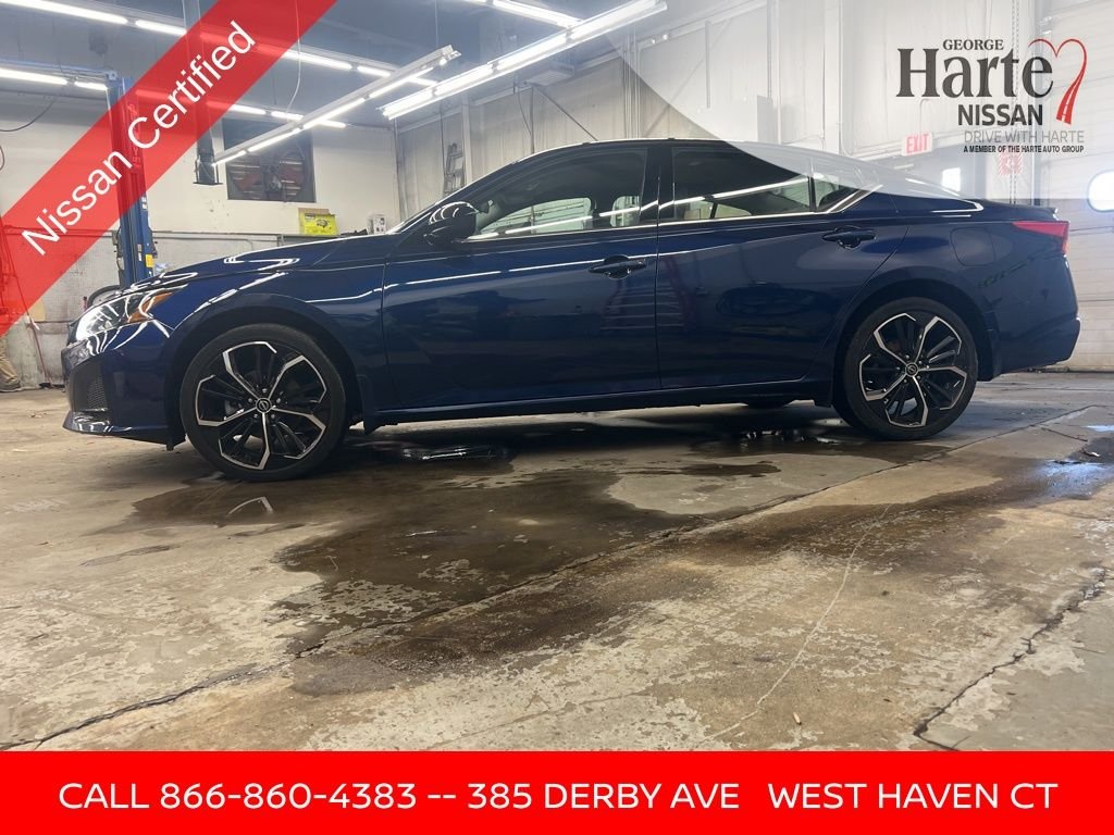 2023 Nissan Altima 2.5 SR AWD Sedan for Sale Near New Haven, CT. Finished in Deep Blue Pearl, this 2023 Nissan Altima 2.5 SR AWD combines sporty design, all-weather capability, and modern technology in a fuel-efficient midsize sedan. With All-Wheel Drive, SR sport styling, and Harte Certified Plus coverage, this Altima is an excellent choice for drivers throughout New Haven, Milford, and Fairfield County. Powered by Nissans proven 2.5L 4-cylinder engine paired with a smooth CVT with Xtronic, the Altima delivers confident performance and impressive efficiency at 26 MPG city / 36 MPG highway. The intelligent AWD system provides added traction and stability, making this sedan ideal for Connecticut road conditions year-round. This vehicle is a One-Owner, Clean CarFax, and a Recent Arrival, offering strong value compared to market pricing while retaining modern features and remaining factory-backed coverage through certification.