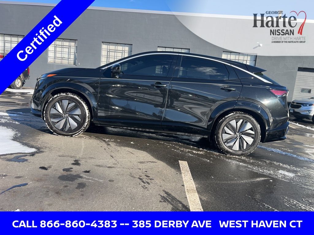 George Harte Nissan 4.7 | 2,287 Google Reviews Trusted Nissan Dealer in West Haven, Connecticut Family-Owned & Operated Since the 1950s. New Price! Certified 2023 Nissan Ariya Engage One Owner • Clean Carfax • Fully Electric SUV. Experience the future of driving in this 2023 Nissan Ariya Engage, finished in stunning Black Diamond Pearl with a modern Light Gray Leather interior. This one-owner, clean CARFAX Ariya is Harte Certified Plus, delivering cutting-edge EV technology, premium comfort, and long-term peace of mind.