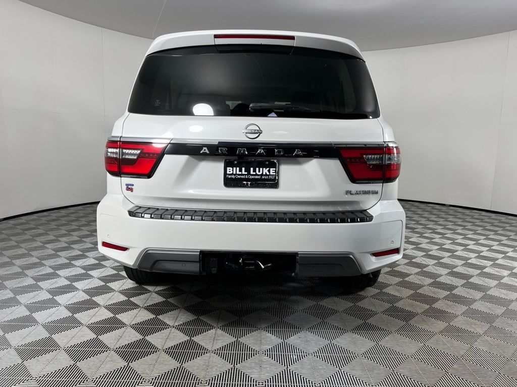 Bill Luke Certified! No hidden fees! All reconditioning costs are fully included in our prices. One owner lease return! DVD, moon roof, navigation, 22" wheels, 13 speaker Bose premium sound system, 12.3" touchscreen display, blind spot monitor and lane departure warning! Experience ultimate luxury and power with this recent arrival 2023 Nissan Armada Platinum RWD in stunning Aspen White Tricoat. This premium SUV is powered by a formidable 5.6L V8 engine delivering 400hp, paired with a smooth 7-speed automatic transmission and a dedicated trailer brake controller for effortless towing. The sophisticated interior features leather seats, a moonroof, and the rear family entertainment system with dual 8" displays and wireless headphones. Stay connected with a 12.3" touchscreen, navigation, Apple CarPlay, and a 13-speaker Bose premium sound system, while advanced safety tech like adaptive cruise control, a surround view camera, and blind spot monitoring ensure total peace of mind. Complete with 22" wheels, a power liftgate, and a wireless charging pad, this Armada Platinum is the pinnacle of comfort and capability.