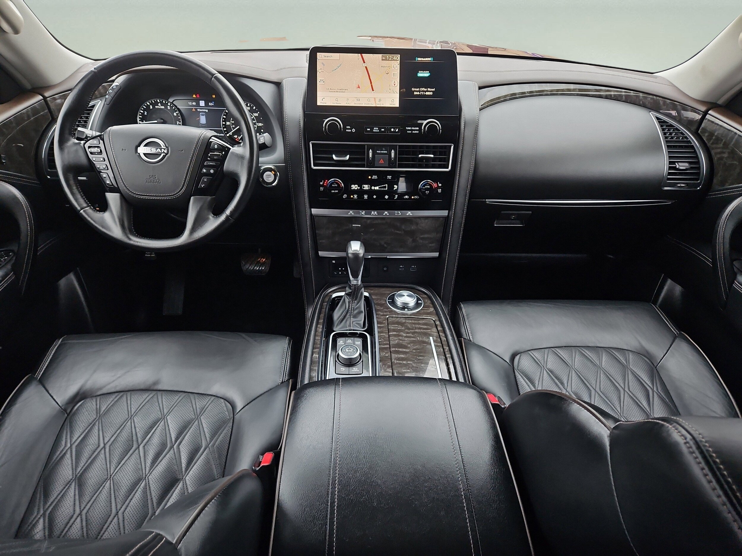 Experience luxury, power, and capability with this Dark Red 2023 Nissan Armada Platinum 4x4 SUV. Powered by a robust 5.6L V8 engine paired with a 7-speed shiftable automatic transmission and advanced 4WD, it's ready for adventure or daily drives. The Platinum trim pampers you with premium leather-trimmed seats, heated and ventilated front seats, heated rear seats, and a heated steering wheel. Stay connected with a 12.3-inch infotainment touchscreen, wireless Apple CarPlay, Android Auto, Amazon Alexa, and Bose Premium Audio. Driver assistance features include adaptive cruise control, lane keeping assist, blind spot monitoring, front and rear automatic emergency braking, and a surround view camera system for peace of mind. Enjoy the convenience of a power moonroof, power folding third row, remote engine start, and a hands-free power liftgate. With seating for up to eight, tri-zone automatic climate control, and rear entertainment system, this Armada is ready for your whole crew. Don't miss this exceptional blend of luxury, technology, and utility in a full-size SUV-schedule your test drive today!
