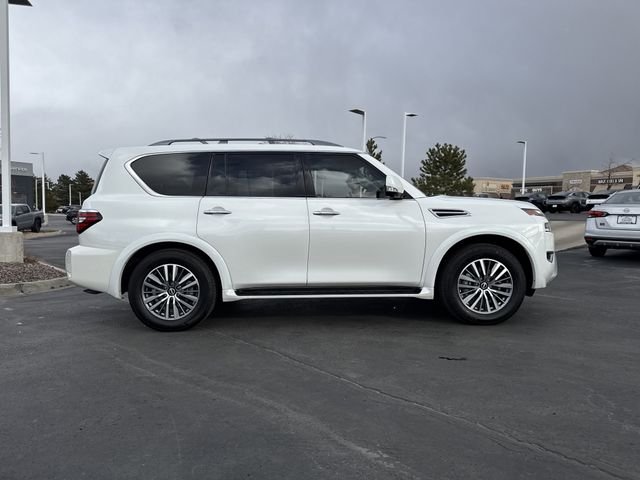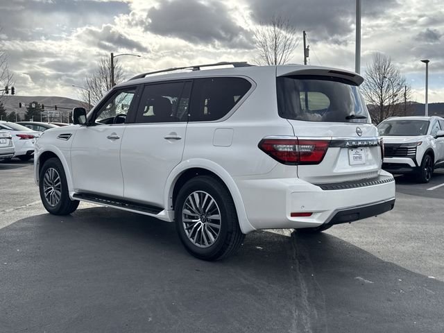 Discover the perfect balance of power, comfort, and technology in the stunning 2023 Nissan Armada SL. This impressive SUV is ready to elevate your driving experience with its exceptional capabilities and premium features. Powered by a robust 5.6L V8 engine delivering 400 horsepower, the Armada SL delivers exceptional performance and towing capacity, while the 4WD system ensures confident handling in any conditions. Enjoy the convenience of the Bose premium audio system, Nissan's advanced connectivity features, and a panoramic moonroof that floods the cabin with natural light. The Armada SL's spacious interior offers seating for up to eight passengers, with ample cargo room to accommodate all your gear. Thoughtful touches like heated front seats, a power driver's seat, and a power liftgate make every journey more comfortable and effortless. Safety is also a top priority, with the Armada SL featuring a comprehensive suite of advanced driver-assistance technologies, including a rearview camera, blind-spot monitoring, and automatic emergency braking. Whether you're an embarking on family adventures or tackling demanding tasks, or simply seeking a refined SUV.