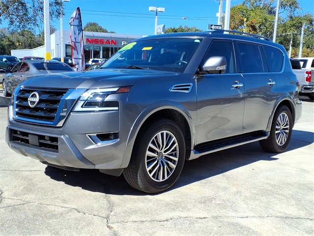2023 Nissan Armada SL Gun Metallic 5.6L V8 /400hp 7-Speed Automatic RWD. 14/19 City/Highway MPG. Nissan Certified Details: Transferable Warranty, Roadside Assistance, Limited Warranty: 84 Month/100,000 Mile (whichever occurs first), Warranty Deductible: $100, 167 Point Inspection, 7 Year/100,000 Mile Limited Warranty, 24/7 Hour Roadside Assistance, Carfax Vehicle History Report, Plus 1 Year Pre-Paid Maintenance Included. Gas Powered Nissan Models Only. Vehicle History. Our Nissan, factory trained, Master technician perform a 167 point inspection and completed routine maintenance. Serving the central Florida area since 1971 and continuing a wonderful history with our new and long time customers, today. We are conveniently located in Titusville, FL just 35 minutes from Orlando Int'l airport, off I-95 exit 220.