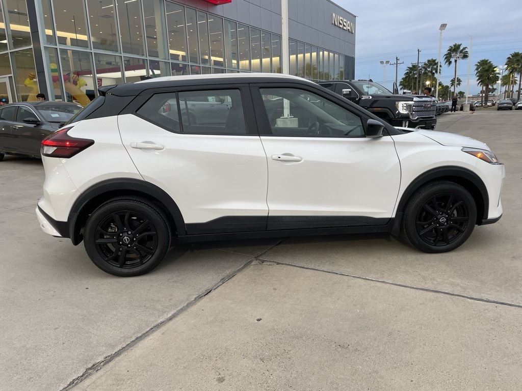 2023 Nissan Kicks SV for Sale in Edinburg, TX. Aspen White Tricoat / Super Black. 1.6L 4-Cylinder. FWD. CVT with Xtronic. Looking for a certified 2023 Nissan Kicks SV for sale in Edinburg, TX? This Nissan Kicks SV compact SUV delivers bold two-tone styling, impressive fuel efficiency, and advanced safety features—perfect for city driving and daily commuting. Powered by a 1.6L 4-cylinder engine paired with a CVT with Xtronic, this Kicks offers smooth performance and outstanding value. Finished in eye-catching Aspen White Tricoat with Super Black accents and a Charcoal interior, it’s a standout on the road.
