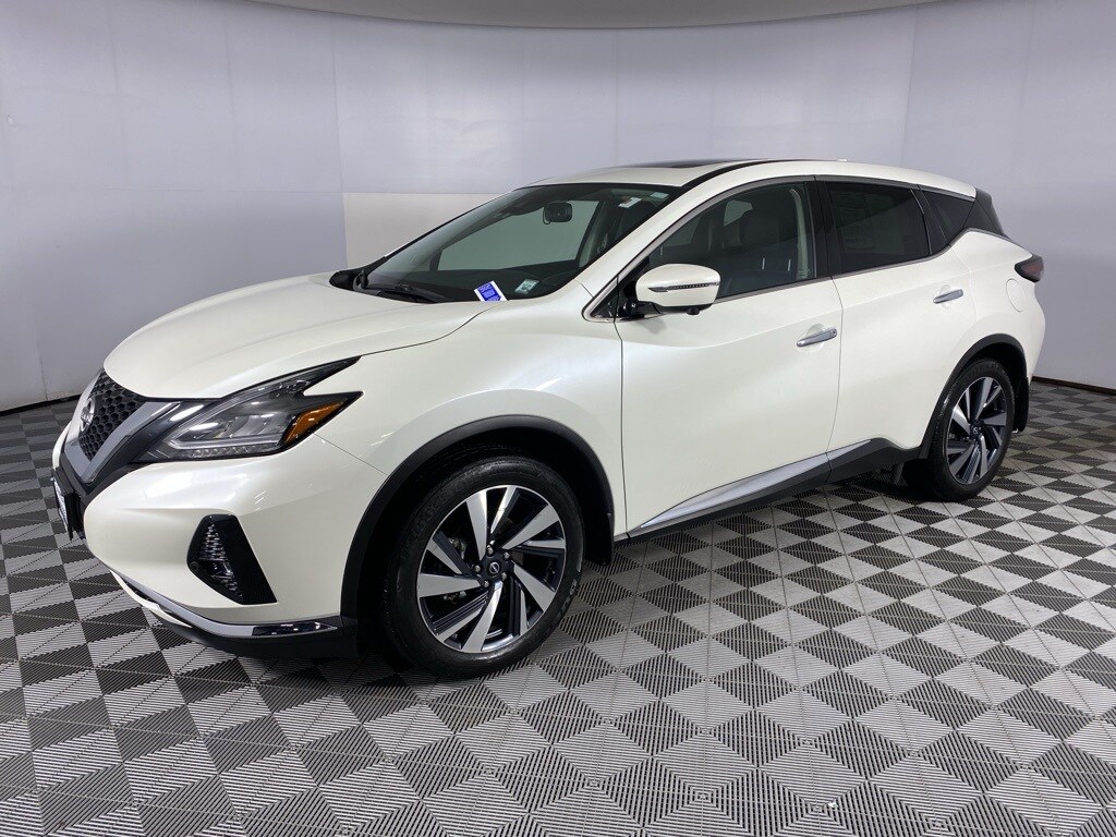 Certified. 2023 Nissan Murano SL Pearl White Tricoat CARFAX One-Owner. Clean CARFAX. Nissan Certified Certified, CVT with Xtronic, AWD, Backup Camera, Sunroof / Moonroof, Navigation System, Heated Seats, Heated Steering Wheel, Heated Rear Seats, Cargo Area Protector, Cargo Net, Cargo Package, Dual-Panel Moonroof, First Aid Kit, Retractable Cargo Cover, Roof Rail Delete, SL Moonroof Package. 20/28 City/Highway MPG Nissan Certified Details: Transferable Warranty, 167 Point Inspection, 7 Year/100,000 Mile Limited Warranty, 24/7 Hour Roadside Assistance, Carfax Vehicle History Report, Plus 1 Year Pre-Paid Maintenance Included. Gas Powered Nissan Models Only. Warranty Deductible: $100. Limited Warranty: 84 Month/100,000 Mile (whichever occurs first). Roadside Assistance. Vehicle History. IMPORTANT RECALL INFORMATION. Some vehicles may be subject to unrepaired safety recalls. Go to www.safercar.gov to learn whether an individual vehicle is subject to an open recall.