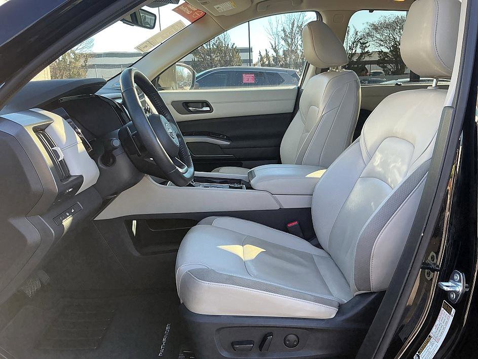 CARFAX One-Owner. All our vehicles are priced very aggressively to the current market and fully reconditioned. Free, Rear back up camera, Bluetooth, 2 sets of keys, leather, heated seats, intelligent key, alloys, Nissan Certified, one owner, power seat, Apple CarPlay, Android audio, 4x4, panoramic moonroof. The 2023 Nissan Pathfinder SL comes well equipped with the SL Premium Package, featuring a power panoramic moonroof, 20-inch alloy wheels, and a tow hitch with wiring capable of towing up to 6,000 lbs, complemented by a premium BOSE sound system, heated second-row captains chairs, a removable second-row center console, splash guards, and carpeted floor mats for captains chairs, delivering a comfortable, capable, and family-friendly three-row SUV with upscale amenities and strong towing capability. Certified. 4WD. Odometer is 5026 miles below market average!