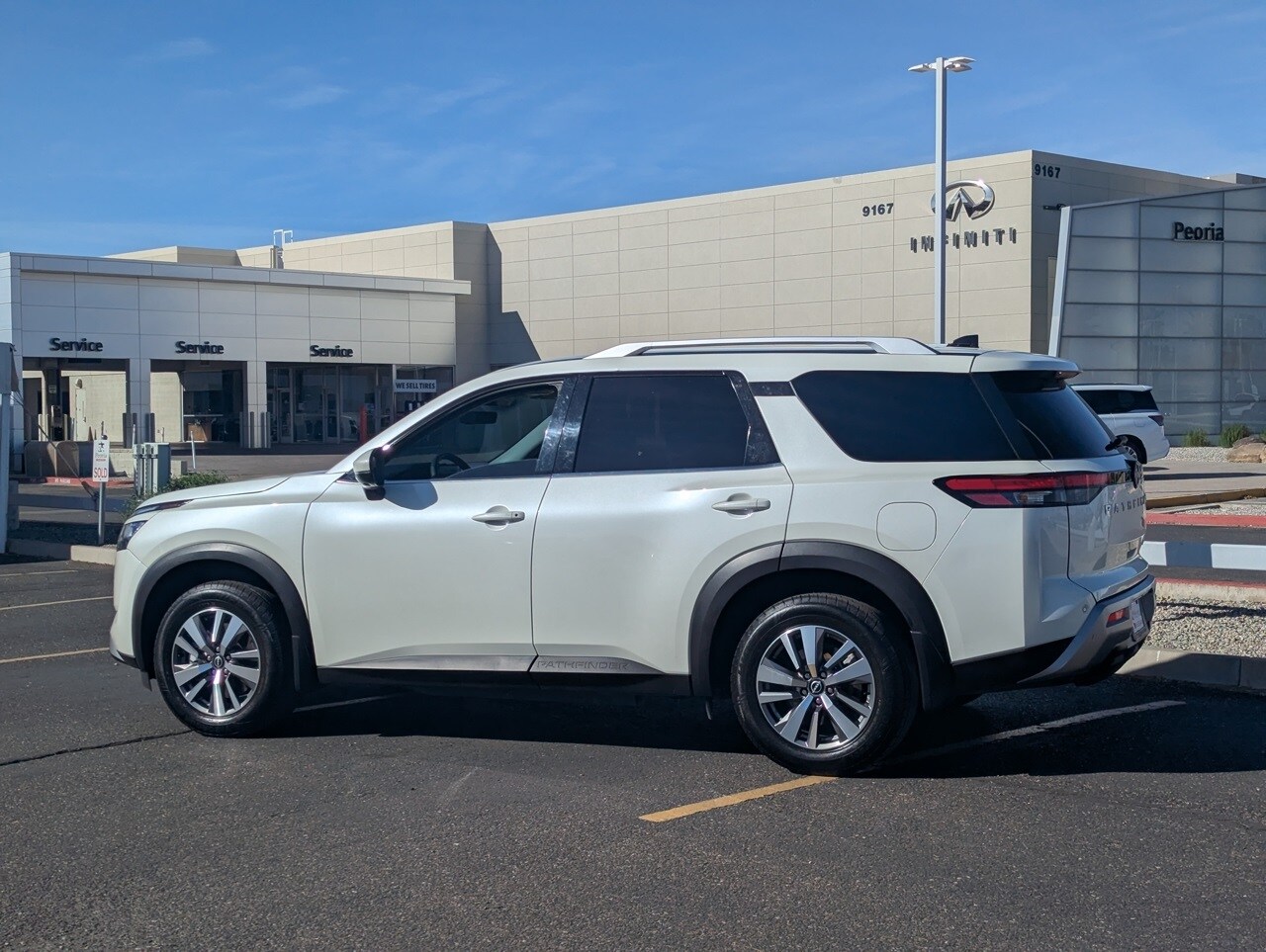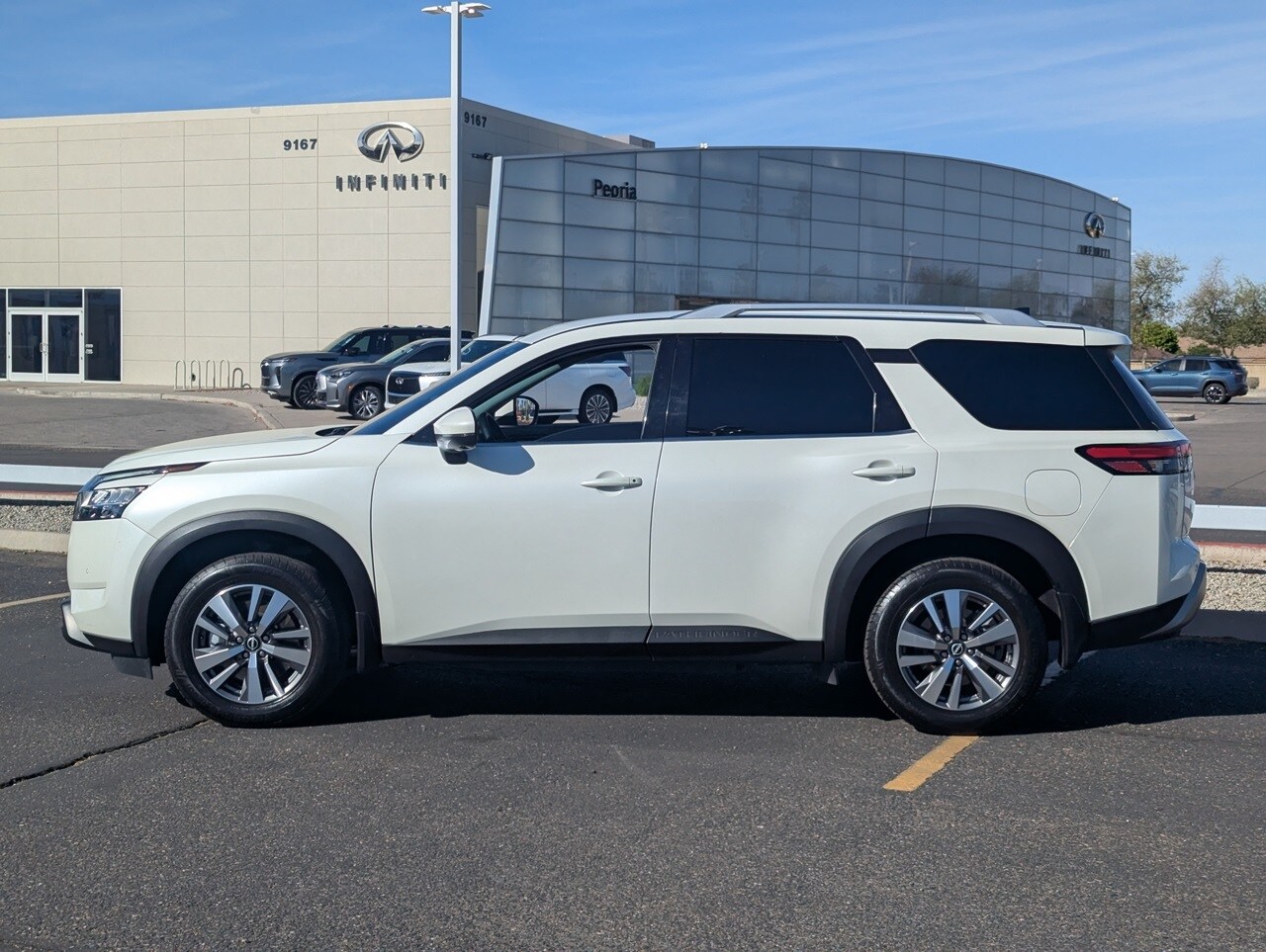 CARFAX One-Owner. Pearl White Tricoat 2023 Nissan Pathfinder SL V6 FWD. We provide 145 point inspection on all our used vehicles. 0% Financing available on this vehicle. It's our mission to faithfully serve our Phoenix-area friends and neighbors, including folks in Sun City, Surprise, Chandler, Avondale, Glendale, Scottsdale, Cave Creek, Mesa, Tempe, Flagstaff, Payson, and Prescott.