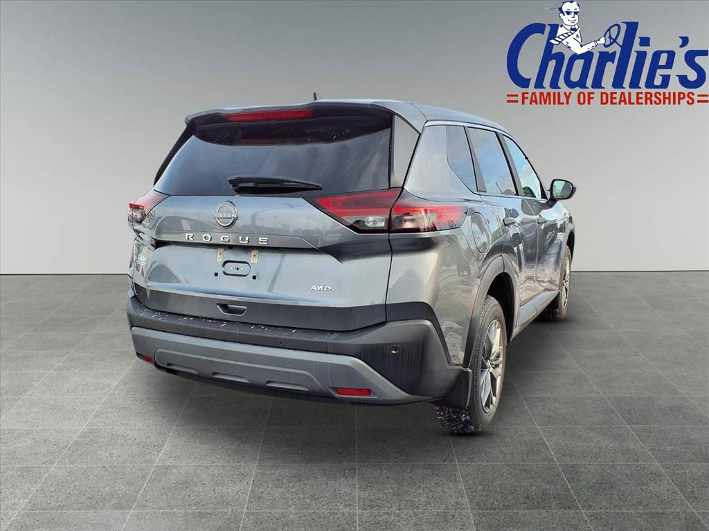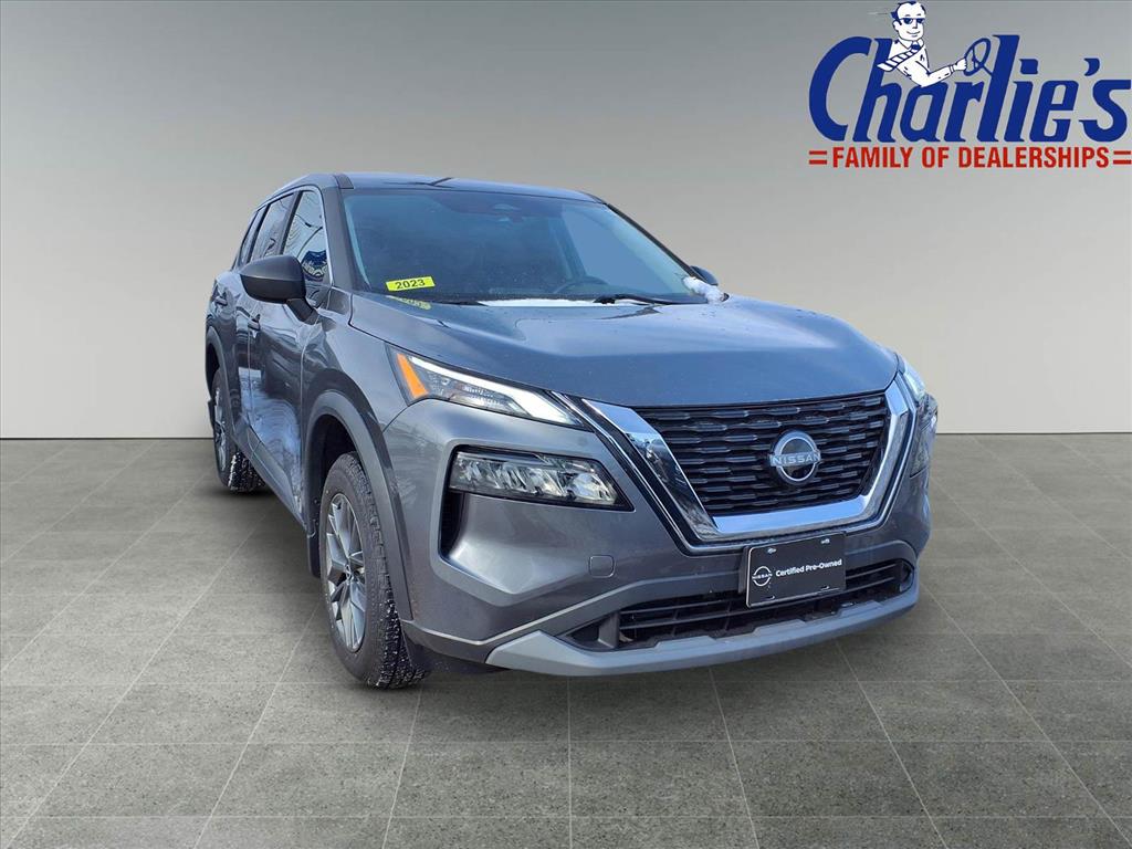 Certified Pre-Owned 2023 Nissan Rogue S located at Charlie's Pre-Owned in Augusta, ME. This SUV features all-wheel drive, a turbocharged I-3 engine, and a comfortable interior with seating for five. Enjoy a smooth and comfortable ride with features like a continuously variable automatic transmission, alloy wheels, and a rearView Monitor. The vehicle is in excellent condition, with only 50,925 miles on the odometer, and comes with a range of convenience and safety features.