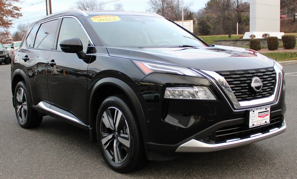 Thank you for visiting another one of Bridgewater Nissan's exclusive online listings! Check out this excellent condition Super Black 2023 Nissan Rogue Platinum w/Premium Pkg 1.5L I3 Turbocharged DOHC 12V LEV3-ULEV50 201hp CVT with Xtronic 28/34 City/Highway MPG. This Rogue Platinum AWD is well equipped and includes these features and benefits: Platinum Premium Package, AWD, Heads-Up Display, Navigation system: NissanConnect Navigation, Tri-Zone HVAC, Heated Driver & Front Passenger Seats, Rear Heated Seats, Heated Leather-Wrapped Steering Wheel, Leather Seat Trim, Power Liftgate, Power Panoramic Moonroof, Roof Rails, Second Row Sunshades, AM/FM Radio, Backup Camera, Bluetooth, power windows, alloy wheels, Nissan intelligent-key with Push Start button and alot more. This AWD-equipped Rogue handles well in any weather condition or terrain. You'll benefit from superb handling, improved steering and excellent acceleration. At Bridgewater Nissan, we strive to provide you with the best quality vehicles for the lowest possible price, and this Rogue is no exception. Contact us at 908-722-3600. You will love the Bridgewater Nissan experience!