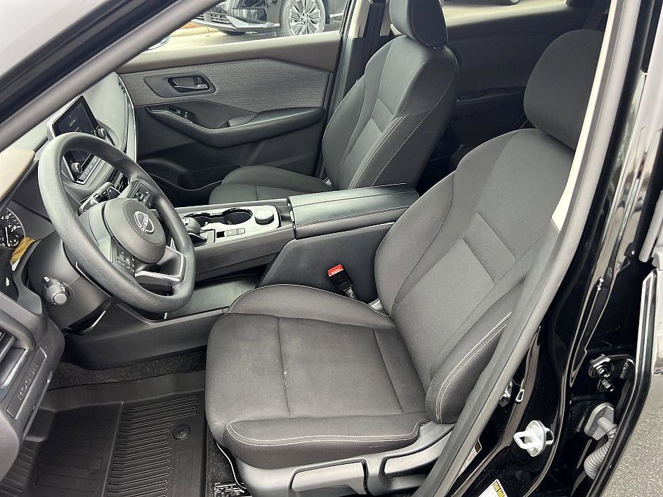 2023 Nissan Rogue S AWD Super Black, Carfax One Owner, Push Button Start, Local Trade In, Bluetooth Capability, XM Satellite Radio, Sirius Satellite Radio, 7 Year--100K Mile Warranty, New Tires, Color In-Dash Rear View Monitor. The 2023 Nissan Rogue S includes manufacturer-installed splash guards, a set of four black splash guards, floor mats, a one-piece cargo area protector, a seatback protector, and a first aid kit, while comfort and convenience features include cruise control, rear door alert, and voice recognition; infotainment and connectivity are handled through NissanConnect with Apple CarPlay, Android Auto, SiriusXM Radio, and an 8-inch color touchscreen display, and exterior highlights include 17-inch alloy wheels, Intelligent Auto Headlights, LED low- and high-beam headlights, LED daytime running lights, and LED taillamps, making this Rogue S a well-equipped and modern compact SUV.
