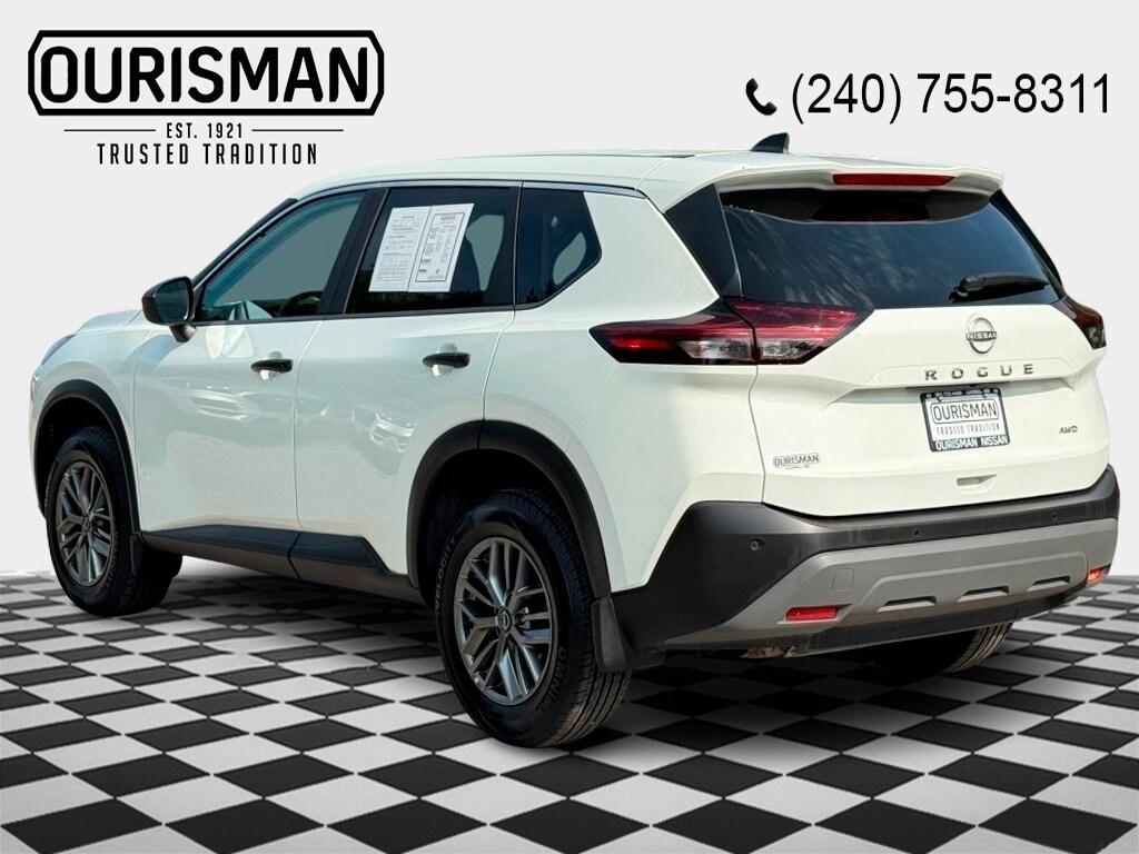 2023 Nissan Rogue S Glacier White USB/AUX, Bluetooth, Carfax Certified, One Owner, New Tires!, New Brakes!, New Oil change and New oil filter, Blind Spot Monitor, Pre Collision System, Back Up Camera, Apple CarPlay, AWD, 17" Aluminum Alloy Wheels, 4 Speakers, 4-Wheel Disc Brakes, ABS brakes, Air Conditioning, Alloy wheels, AM/FM Radio, AM/FM radio: SiriusXM, Auto High-beam Headlights, Black Splash Guards (Set of 4), Blind Spot Warning, Brake assist, Bumpers: body-color, Delay-off headlights, Dual front impact airbags, Dual front side impact airbags, Electronic Stability Control, Four wheel independent suspension, Front anti-roll bar, Front Bucket Seats, Front Center Armrest, Fully automatic headlights, Knee airbag, Low tire pressure warning, Passenger door bin, Power steering, Power windows, Radio data system, Rear Parking Sensors, Rear window defroster, Remote keyless entry, Split folding rear seat, Steering wheel mounted audio controls, Traction control. Nissan Certified Details: Warranty Deductible: $100, Transferable Warranty, Limited Warranty: 84 Month/100,000 Mile (whichever occurs first), 167 Point Inspection, Roadside Assistance, Vehicle History, 7 Year/100,000 Mile Limited Warranty, 24/7 Hour Roadside Assistance, Carfax Vehicle History Report, Plus 1 Year Pre-Paid Maintenance Included. Gas Powered Nissan Models Only. CARFAX One-Owner. 28/35 City/Highway MPG Buyers should take pride in knowing that Maryland has one of the most comprehensive state inspections in the country. Awards: ALG Residual Value Awards, Residual Value Awards We know you have done a great deal of research, and you don't have time for hours of back-and-forth negotiations. At Ourisman Motors of Laurel, your hassle-free purchase is backed by our extensive Market Research. Our No-Haggle pricing ensures you the best value on your vehicle-no games, no gimmicks. Unlike our competitors, we don't add any additional fees to the posted price or certification. You pay only the posted price of the vehicle plus Sales tax, your registration and a MD processing charge of $800 Not required by law. Come see why Ourisman Hyundai, Mazda, Mitsubishi, Nissan in Laurel (Ourisman Laurel Campus) offers you the best value for your money! Serving Rockville, Potomac, Baltimore, Silver Spring, DC, Howard County, Montgomery County, Anne Arundel.