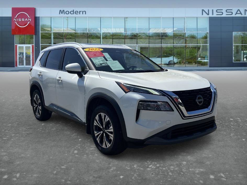 2023 Nissan Rogue SV FWD Pearl White Tricoat The 2023 Nissan Rogue SV is a well-equipped compact SUV that offers a strong combination of comfort, technology, and practicality, enhanced with manufacturer-included options such as splash guards, a chrome rear bumper protector, premium paint, and a full set of floor mats including a cargo area protector, seatback protector, and first aid kit. It also features the SV Premium Package, adding Prima-Tex leatherette seats, heated front seats, a heated leather-wrapped steering wheel, second-row door sunshades, a power liftgate, and a power panoramic moonroof for an elevated driving experience. Additional highlights include roof rails, rear personal lights, and a security alarm system, making the 2023 Nissan Rogue SV a versatile and comfortable SUV designed for both daily driving and family convenience. Certified. CARFAX One-Owner. Clean CARFAX. 30/37 City/Highway MPG.