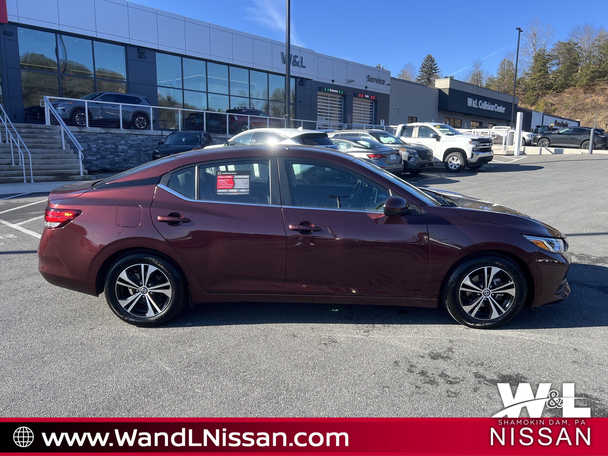 W&L Nissan is pumped up to offer this wonderful 2023 Nissan Sentra in Rosewood Metallic. We use market-based pricing to assure the best value for our clients. This Sentra has been serviced by our expert Nissan trained technicians and comes with the following features; CVT with Xtronic, Charcoal Cloth. Clean CARFAX. Certified. Nissan Certified Details: Limited Warranty: 84 Month/100,000 Mile (whichever occurs first), 7 Year/100,000 Mile Limited Warranty, 24/7 Hour Roadside Assistance, Carfax Vehicle History Report, Plus 1 Year Pre-Paid Maintenance Included. Gas Powered Nissan Models Only. 167 Point Inspection, Transferable Warranty, Warranty Deductible: $100, Vehicle History, Roadside Assistance. Odometer is 10715 miles below market average! 29/39 City/Highway MPG 2.0L DOHC FWD CVT with Xtronic. Founded in 1965, W&L has been providing a friendly, no-hassle car buying experience for more than 40 years. We have been family owned and operated from the start, and we take pride in our no-pressure sales environment. We are proud to offer free loaner vehicles for our service customers when needed, free lifetime state inspection for all your household vehicles every 5th oil change free, and also free pick-up and delivery for local service customers. At our dealership you will find the most popular new Nissan models, as well as a comprehensive array of used cars, trucks, crossovers and SUVs. Our courteous, experienced and professional staff is waiting to assist you. That's the W&L Difference! We have a strong and committed sales staff with many years of experience satisfying our customers' needs. Feel free to browse our inventory online, request more information about vehicles, set up a test drive or inquire about financing! Our showroom is cleaned nightly and we follow the CDC guidelines to keep both our staff and your family safe and healthy. Our showroom is located at 3819 N Susquehanna Trail, Shamokin Dam, PA 17876, right in the heart of Pennsylvania. We have served many customers from Winfield, College Park, Lewisburg, Potts Grove, Milton, Mooresburg, Mausdale, Danville, Riverside, Rushtown, Klines Grove, Snydertown, Oaklyn, Sunbury, Stroudsburg, Hanover County