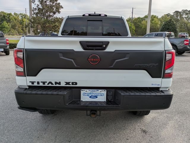 Certified. 2023 Nissan Titan XD PRO-4X 4WD 9-Speed Automatic 5.6L V8 DOHC 32V Federal 400hp Glacier White. Titan XD PRO-4X, 4WD, Navigation system: NissanConnect Navigation, Off Road Protection Package (K94), PRO-4X Mud Flaps, PRO-4X Rugged Step Boards, Radio: NissanConnect w/Navigation.