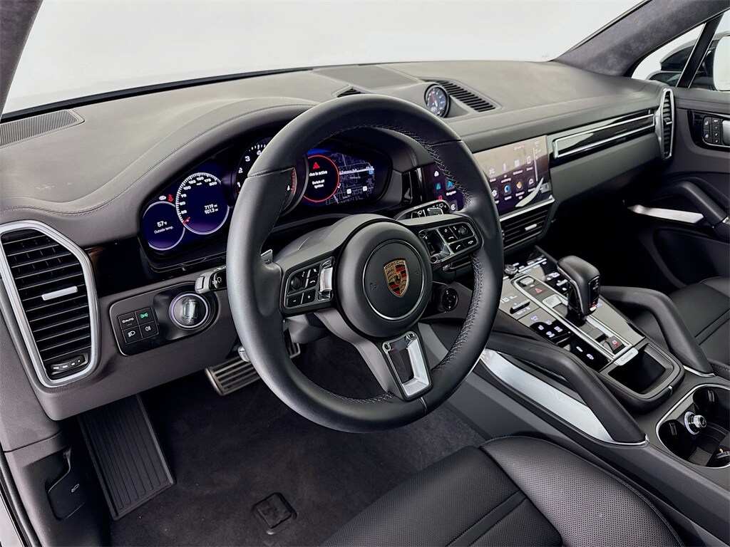 Porsche Approved Certified Pre-Owned! 2023 Porsche Cayenne Turbo in Chromite Black with Leather Interior in Black. Under Porsche Approved Certified Pre-Owned Warranty for 2 Years and Unlimited Miles from Expiration of Porsche New Vehicle Warranty. New Vehicle Warranty Start Date is 1/25/2024. Premium Package Plus: Ambient Lighting, Ventilated Seats (front), 4-Zone Climate Control, LED-Matrix Design Headlights incl PDLS+, Lane Change Assist, and Comfort Access. Also with: Window Trim in High Gloss Black, Under Door Puddle Light Projectors, "PORSCHE" Logo in Satin Black and Model Designation on Rear in High Gloss Black, Exclusive Design Fuel Cap, Sport Chrono Package, Sport Exhaust System incl Tailpipes in Black, Brake Calipers in High Gloss Black, Locking Wheel Bolts, 22" Cayenne Sport Classic Wheels in High Gloss Black, Power Sunblind for Rear Side Windows, Interior Trim in Carbon Fiber, Door-Sill Guards in Carbon Fiber - Illuminated, Clear LED Taillights, Surround View, Adaptive Cruise Control incl Lane Keep Assist, and Soft Close Doors. Available at Porsche Grapevine 1280 Texan Trail Grapevine TX 76051.