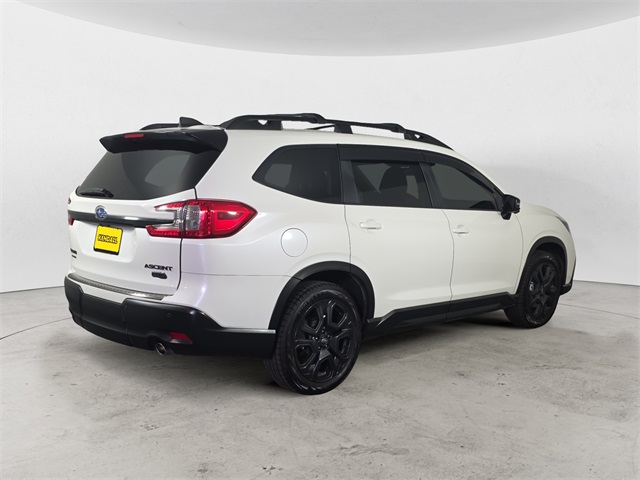 CARFAX One-Owner. Clean CARFAX. Crystal White Pearl 2023 Subaru Ascent Onyx Edition AWD Lineartronic CVT 2.4L 4-Cylinder DOHC 16V 14 Speakers, 3rd row seats: bench, 4-Wheel Disc Brakes, ABS brakes, Aero Crossbar Set, Air Conditioning, All-Weather Floor Liners, Alloy wheels, AM/FM radio: SiriusXM, Auto High-beam Headlights, Auto-Dimming Exterior Mirror w/Approach Light, Auto-dimming Rear-View mirror, Automatic temperature control, Axle Ratio: 4.44, Black Chrome Rear Bumper Cover, Brake assist, Bumpers: body-color, Compass, Delay-off headlights, Driver door bin, Driver vanity mirror, Dual front impact airbags, Dual front side impact airbags, Electronic Stability Control, Emergency communication system: STARLINK Safety and Security (Subscription Required), Four wheel independent suspension, Front anti-roll bar, Front Bucket Seats, Front Center Armrest, Front dual zone A/C, Front fog lights, Front reading lights, Fully automatic headlights, Garage door transmitter: HomeLink, harman/kardon® Speakers, Heated door mirrors, Heated Front Bucket Seats, Heated front seats, Heated rear seats, Heated steering wheel, HVAC memory, Illuminated entry, Knee airbag, Leather Shift Knob, Leather steering wheel, Low tire pressure warning, Memory seat, Navigation System, Occupant sensing airbag, Outside temperature display, Overhead airbag, Overhead console, Panic alarm, Passenger door bin, Passenger vanity mirror, Power door mirrors, Power driver seat, Power Liftgate, Power moonroof, Power passenger seat, Power steering, Power windows, Radio data system, Radio: Subaru STARLINK 11.6" Multimedia Nav System, Rear air conditioning, Rear anti-roll bar, Rear reading lights, Rear window defroster, Rear window wiper, Reclining 3rd row seat, Remote keyless entry, Security system, Speed control, Speed-sensing steering, Split folding rear seat, Spoiler, Standard Model, STARLINK/Apple CarPlay/Android Auto, StarTex Upholstery, Steering wheel mounted audio controls, Tachometer, Telescoping steering wheel, Tilt steering wheel, Traction control, Trip computer, Turn signal indicator mirrors, Variably intermittent wipers, Wheels: 20" x 7.5 J Aluminum Alloy w/Black Finish. Recent Arrival! Odometer is 2488 miles below market average!